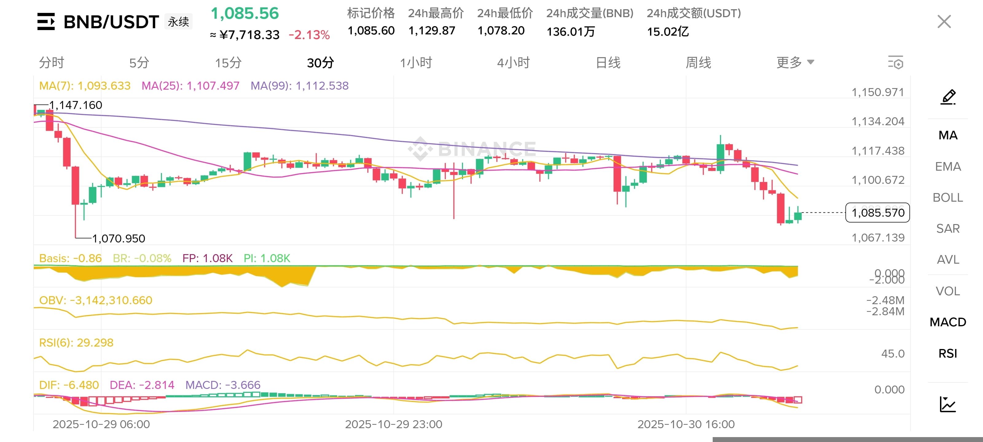 BNB long position around 1085-1080. Add-on entry point: to be determined in the comments.