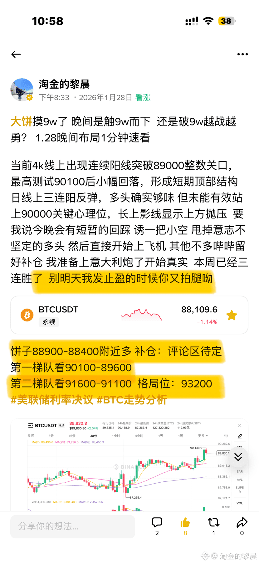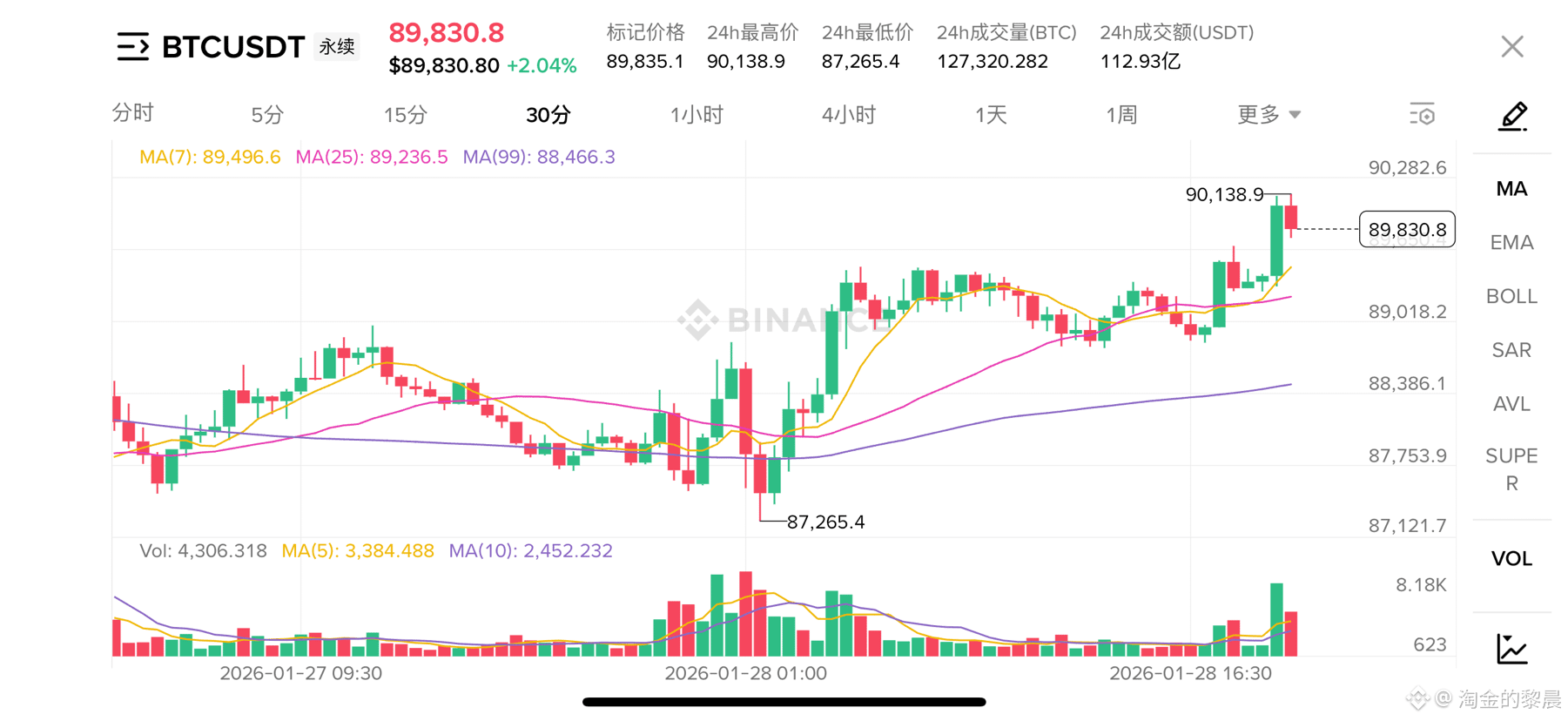 The price of Bitcoin has reached 90,000. Will it touch 90,000 and then fall, or will it break through 90,000 and continue to rise? 1.28 Evening Strategy in 1 Minute