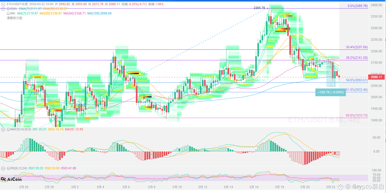 ETH is currently in a weak pattern of "major players running away, retail investors buying," with the daily and 4-hour charts showing bears in control. 2000 is a key support level. If it holds, there might be a rebound to 2100-2120; if it fails to hold, the next target is 1900-1800. The trend remains bearish, and any rebound is an opportunity to sell!
