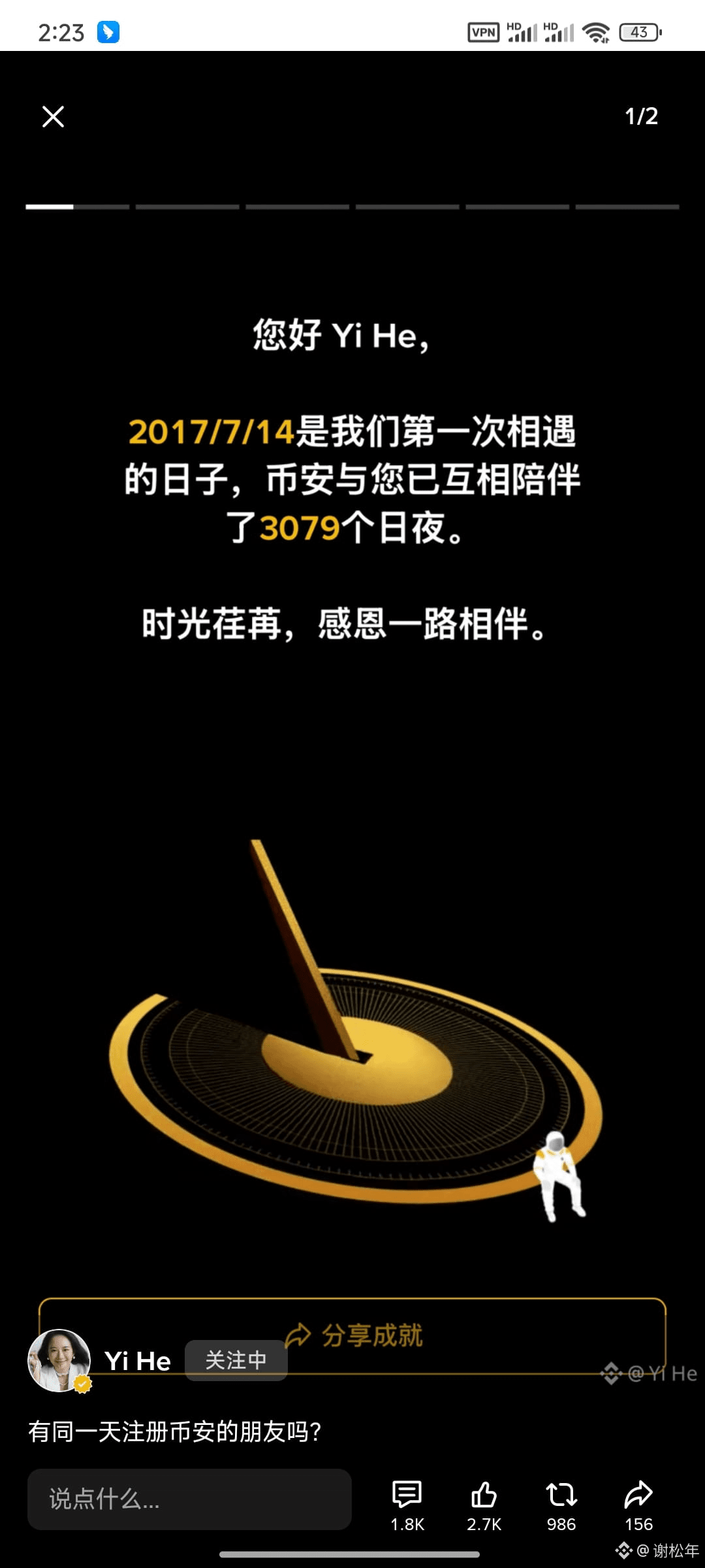 $币安人生 $我踏马来了 $雪球 3079天,“您好 Yi He”是刻在DNA里的共同记忆。