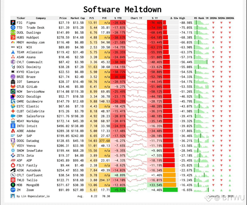 ⚠️ Not just gold and silver, but US software stocks have also crashed, experiencing their worst start to the year in years!