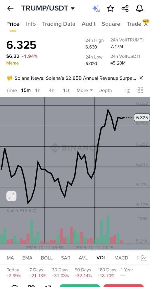 $TRUMP 跌势持续!📉 表情包币 (meme) 表现疲软! 价格:6.325 美元 🔄 **空头区域**:6.40 美元 - 6.60 美元 📉 **止损位**:6.75 美元 🛑 目标价:5.80 美元 - 🎯 30 天内下跌 31% - 看跌势头! 绝佳做空机会!⚡ 立即交易 👉 $TRUMP {future}(TRUMPUSDT) #TRUMP #加密货币 #交易 #币安 #表情包