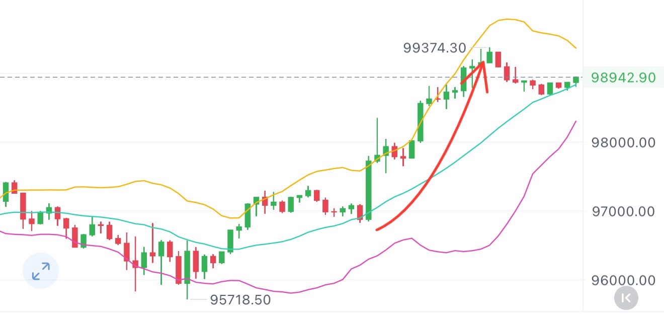 一点都不恐高该进多就进多,还是那句话犹豫不决注定失败! 大饼98700果断切入进多,99300出,又洛带3000油!