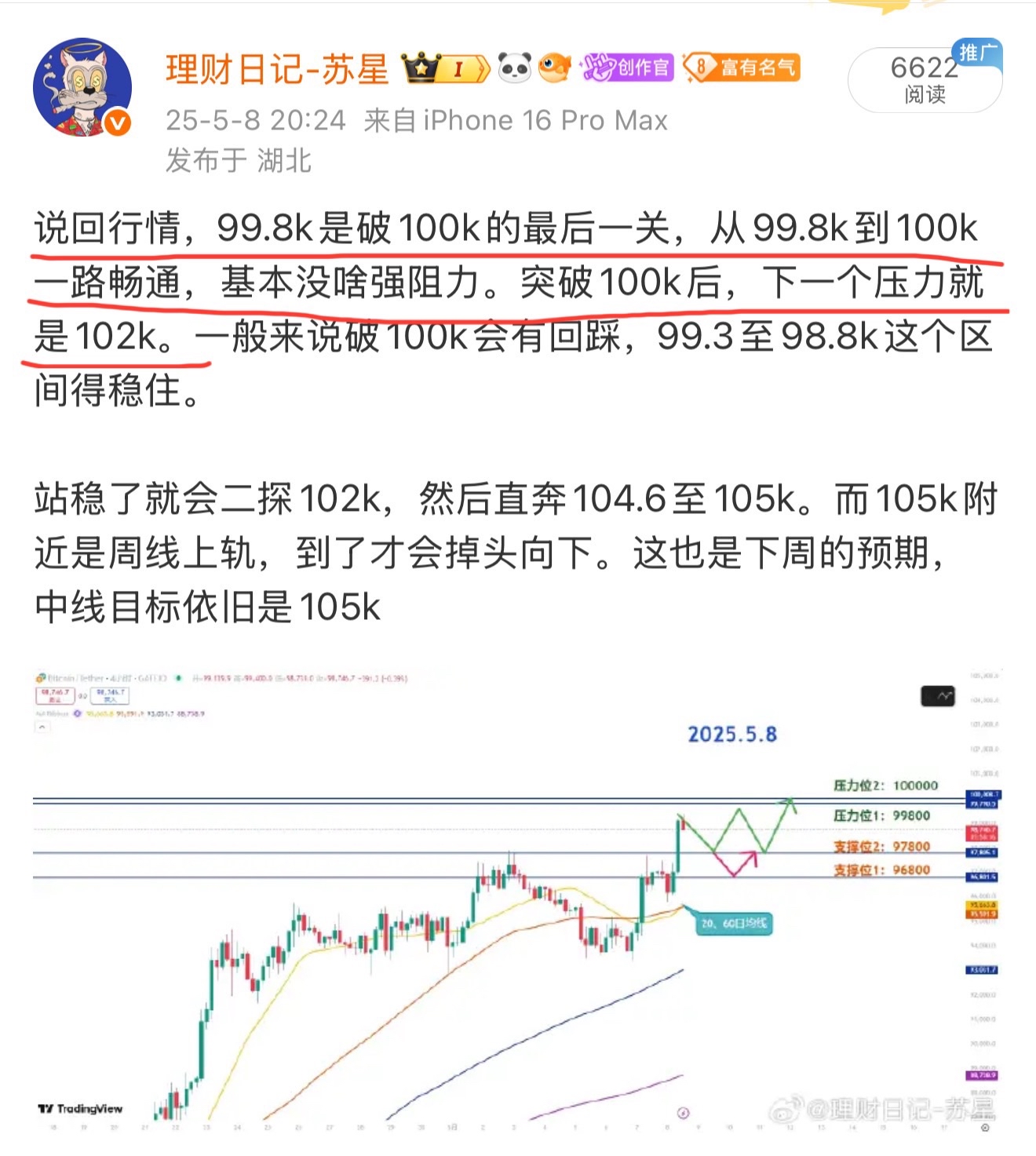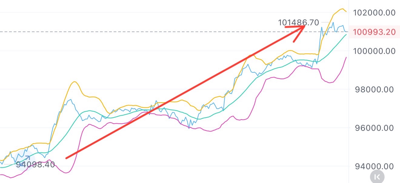答案都已经公布在黑板上,只要仔细看这篇帖子你就不会挨打! 10万根本不是压力位,102000才是,这就是一路冲高至101500的问题所在! 答案给你们解释的明明白白,这样依旧有很多伙伴被打也是没谁了!