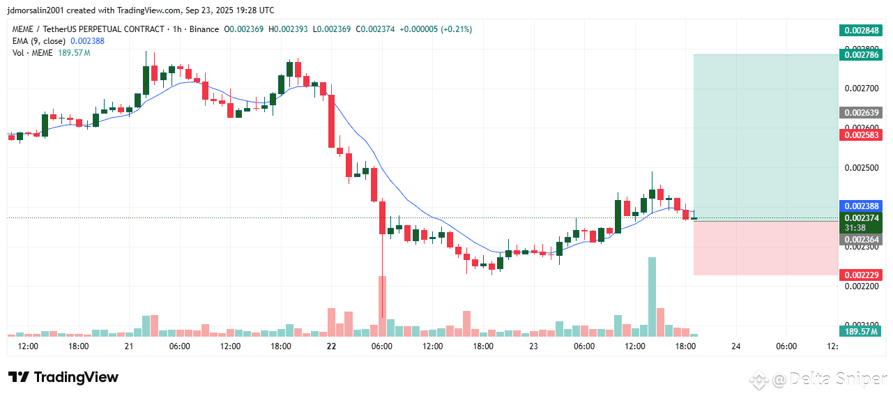 $MEME 在突破 0.00230 支撑位后,正在获得看涨动力。随着买家测试更高水平,动能正在增强,突破 0.00250 可能加速上涨至 0.00260。波动性仍然是一个因素——保持止损位是关键。