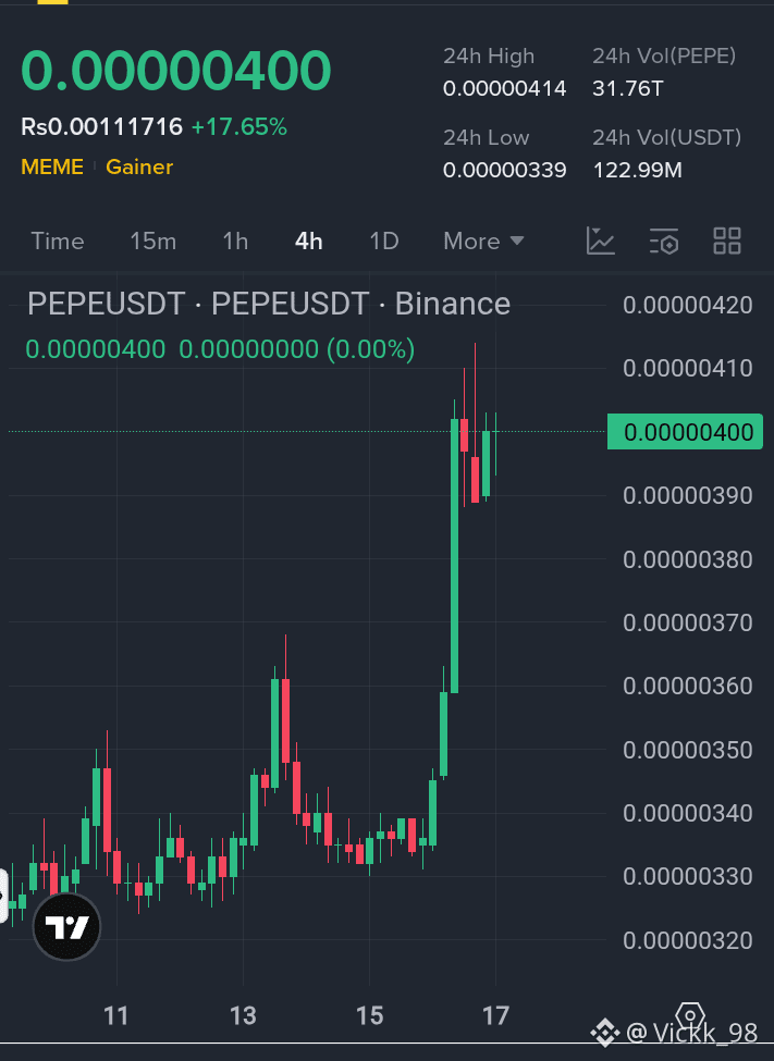 🟢 $PEPE 上涨 17.65%! 💯💯🔥🔥 买入区域:0.0000037–0.0000040 T1:0.0000042 T2:0.0000045 止损:0.0000035 青蛙季回归 🔥 #PEPE #Meme #Crypto #bullish