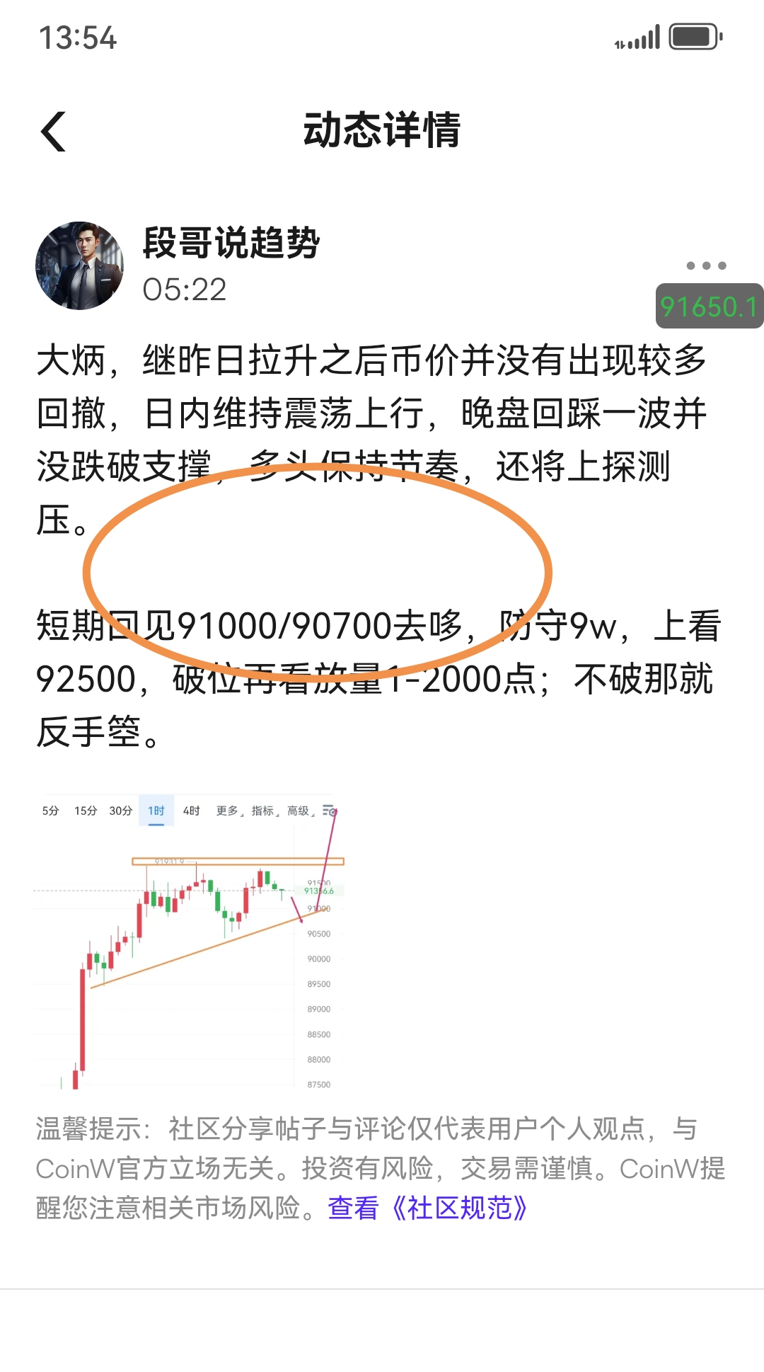 大炳,继昨日拉升之后币价并没有出现较多回撤,日内维持震荡上行,晚盘回踩一波并没跌破支撑,多头保持节奏,还将上探测压。 短期回见91000/90700去哆,防守9w,上看92500,破位再看放量1-2000点;不破那就反手箜。