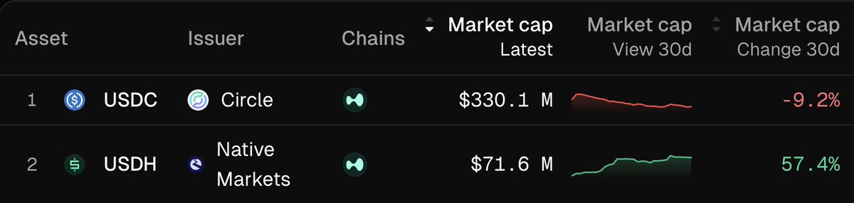 USDH is the fastest growing stablecoin on the @HyperliquidX platform.