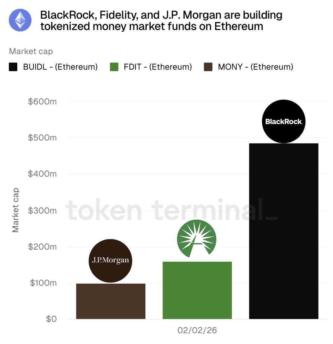 BlackRock, Fidelity, and JPMorgan Chase are building tokenized money market funds on Ethereum. These issuers manage trillions of dollars in assets. On-chain finance is still in its early stages.