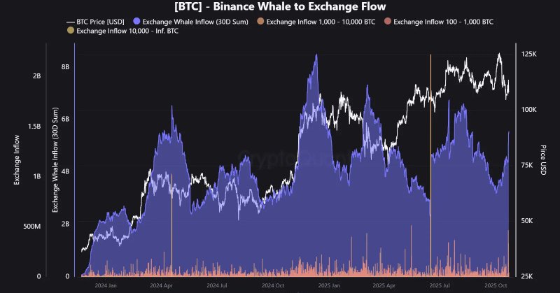 Whale inflows to Binance reached $5.56 billion over the past 30 days. "Total inflows reached $1.07 billion for the day. During this period, the Bitcoin price surged from $108,000 to $113,000 before falling back to $108,000, likely influenced by these massive transfers." – @JA_Maartun @JA_Maartun Read the full analysis ⤵️