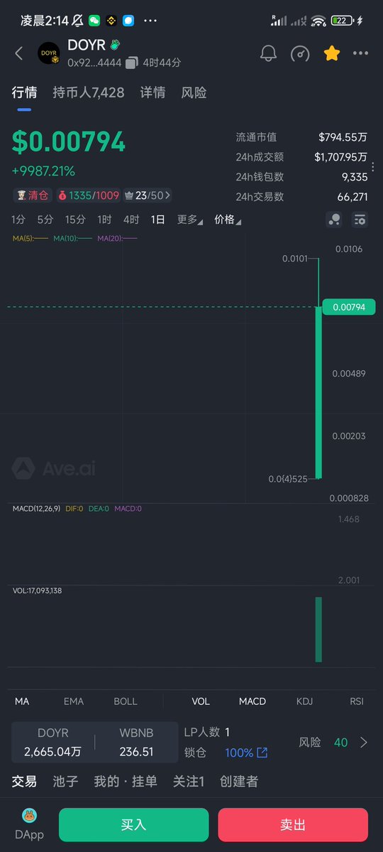 何一故意发错,cz故意回复,我故意买了0.5% doyr,回调可能补0.5%。 很久没出手了,这个叙事确实很性感。 doyr,已被套,勿跟!