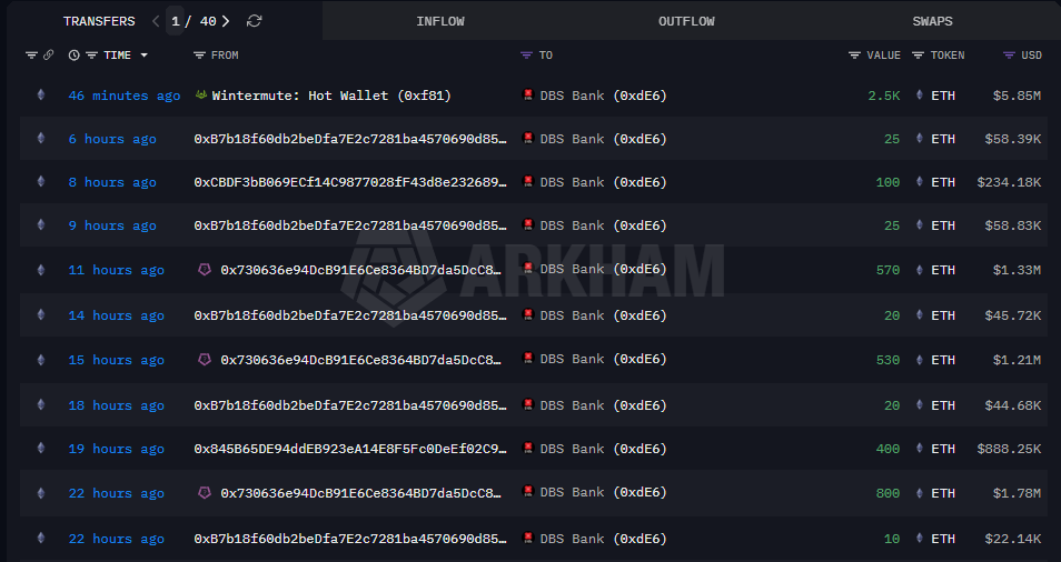 1 小时前,#DBS_Bank 从 #Wintermute 处收到 2.5k $ETH(约 585 万美元)。 一周内,他累计获得 24,898 $ETH(约 6134 万美元),平均每次入场价约为 2,463 美元。 地址: