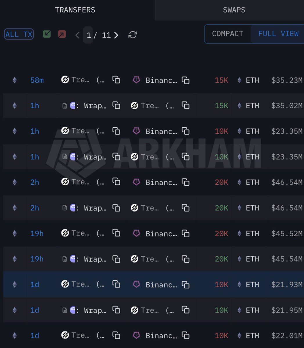 过去两小时内,#TrendResearch 向 #Binance 充值了总计 4.5 万枚 ETH(约 1.05 亿美元)。 地址: