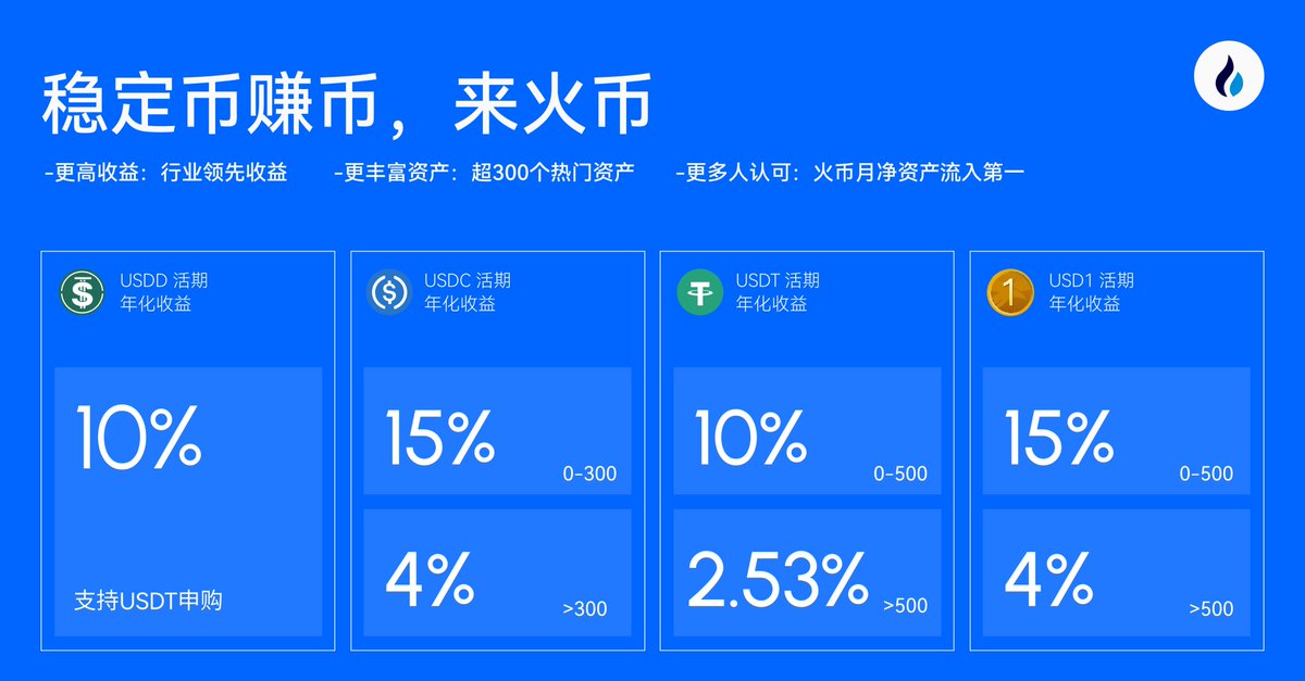 稳定币赚币?就来火币! 🤔 为什么要在【火币赚币】? 👑 火币月净资产流入第一! 当然,我们还有更高的收益、可投资更丰富资产、也有更多火伴认可! 👇 立即开赚!