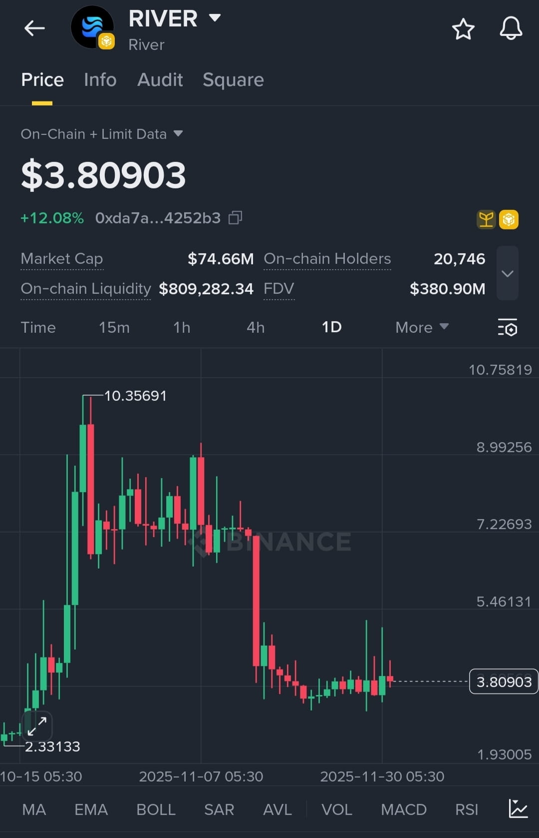 💧 RIVER 币种目前处于底部