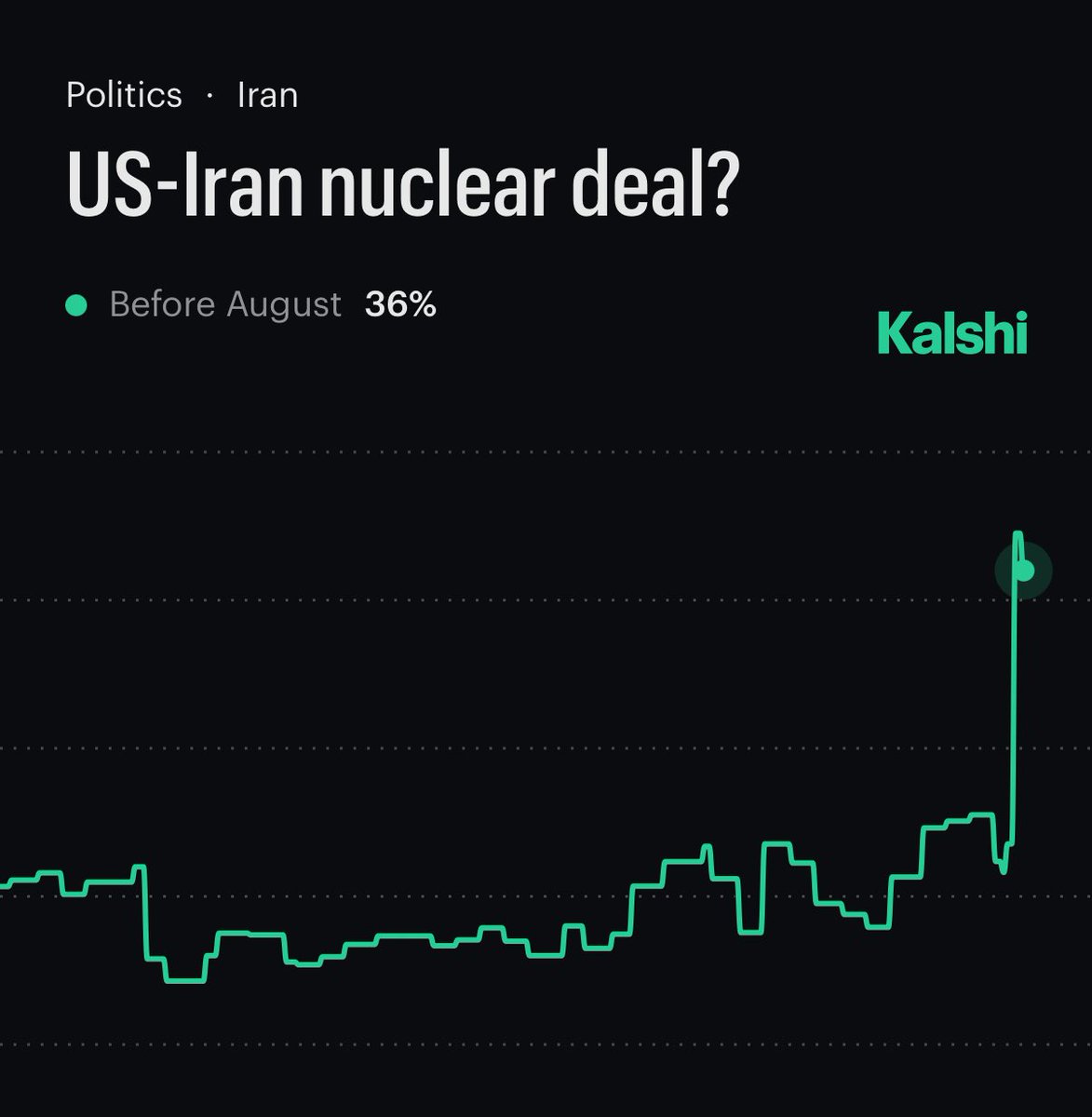 Breaking news: According to Kalshi traders, the probability of the US and Iran reaching a nuclear agreement before August this year has surged to 36%.