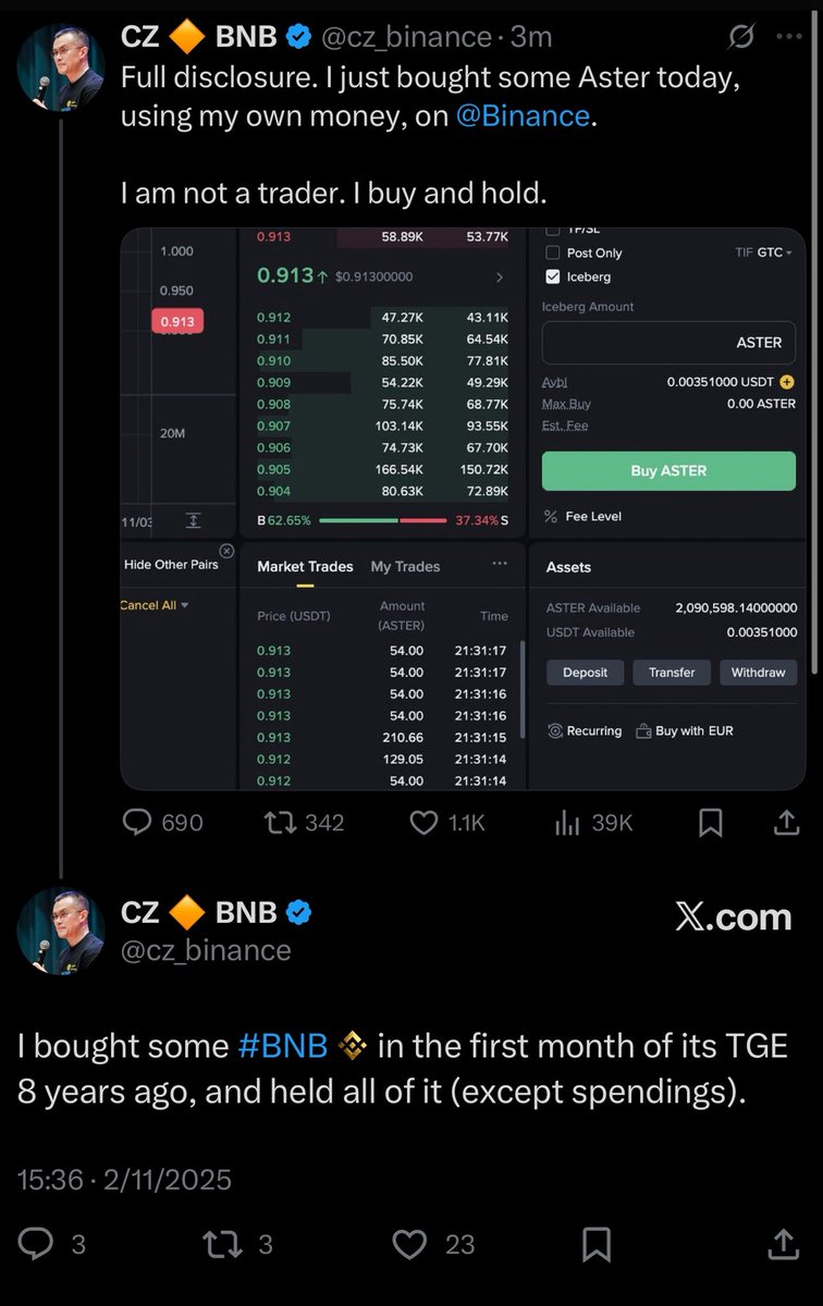 Then today he tweeted that he had bought $ASTER "with his own money,"