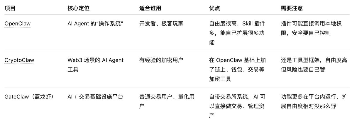 Gate's GateClaw (Blue Lobster) goes beyond just tools; it directly integrates AI agents into the trading infrastructure.