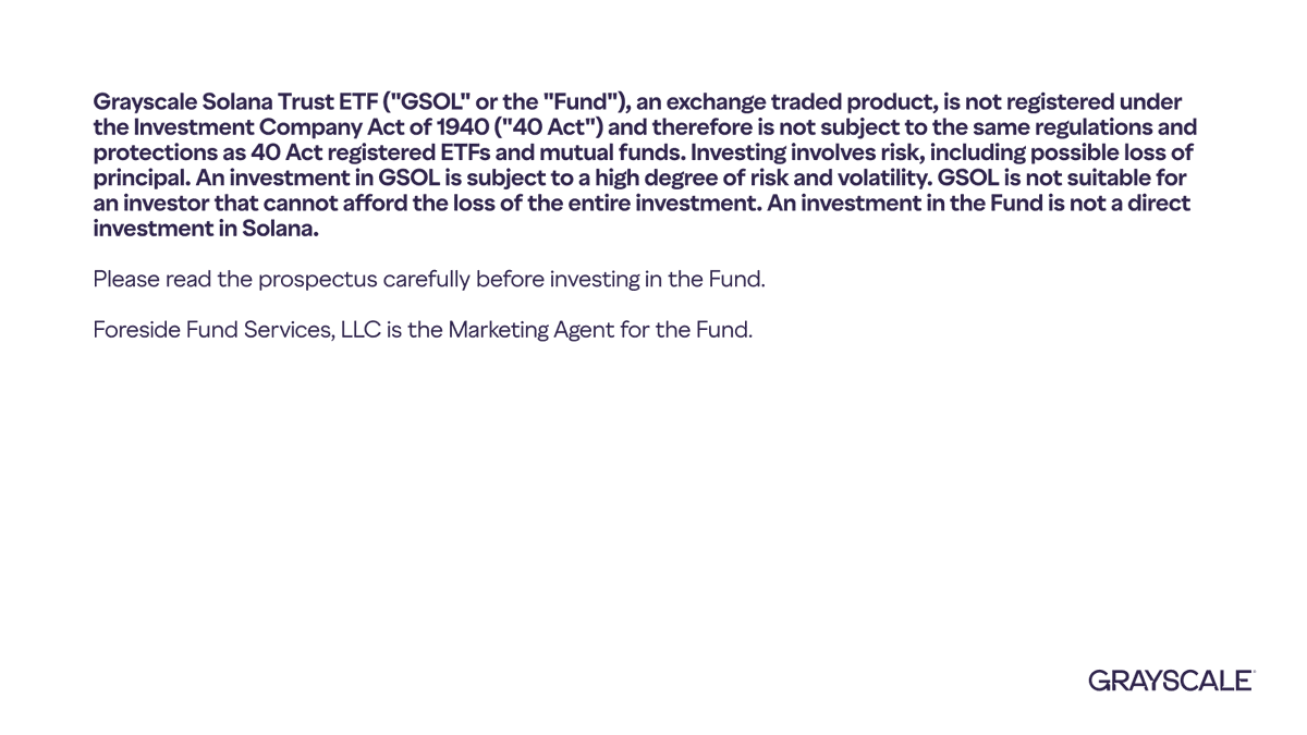 Grayscale 的历史就是一部引领加密货币发展并不断提升产品易用性的历史。今天,我们再次践行这一理念,推出了 Grayscale Solana Trust ETF(股票代码:$GSOL)。