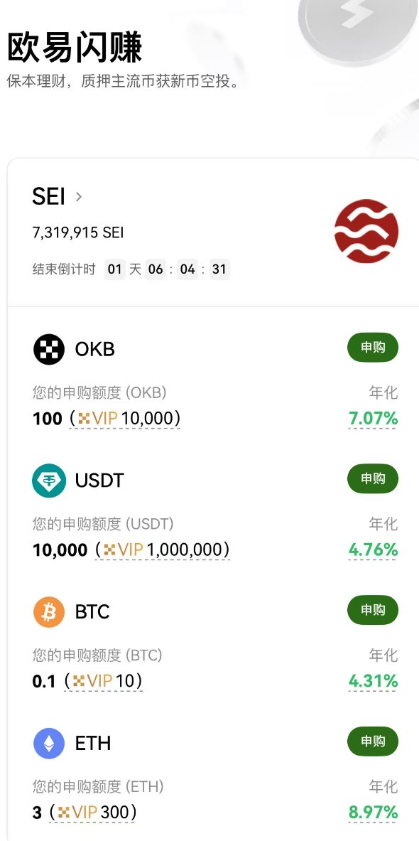 OKX 闪赚本期 @SeiNetwork SEI 只剩下1天了 非常建议别错过去存 @okx 免费薅到的 $SEI 很建议留一手 SEI 现在虽在谷底 但作为成熟的公链,筹码结构健康,币价波动小 美国底子非常能打 看好 SEI 成为下一轮牛市的公链领头羊 #SEI