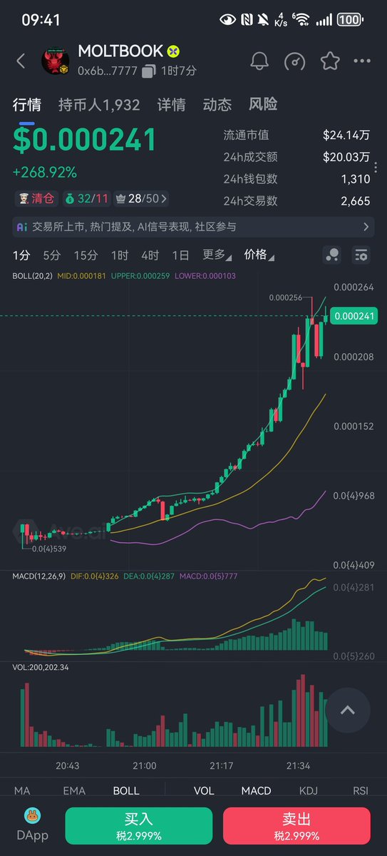 Lately, I've been having a really bad run of luck. Even with a contract at 8x, I got liquidated. Today, on a whim, I went to get my hair permed, and then I missed this big golden dog (MOLTBOOK) trade. Everyone in the group who followed has already gone 5x, and I'm the only one who missed out! FUCK!!!