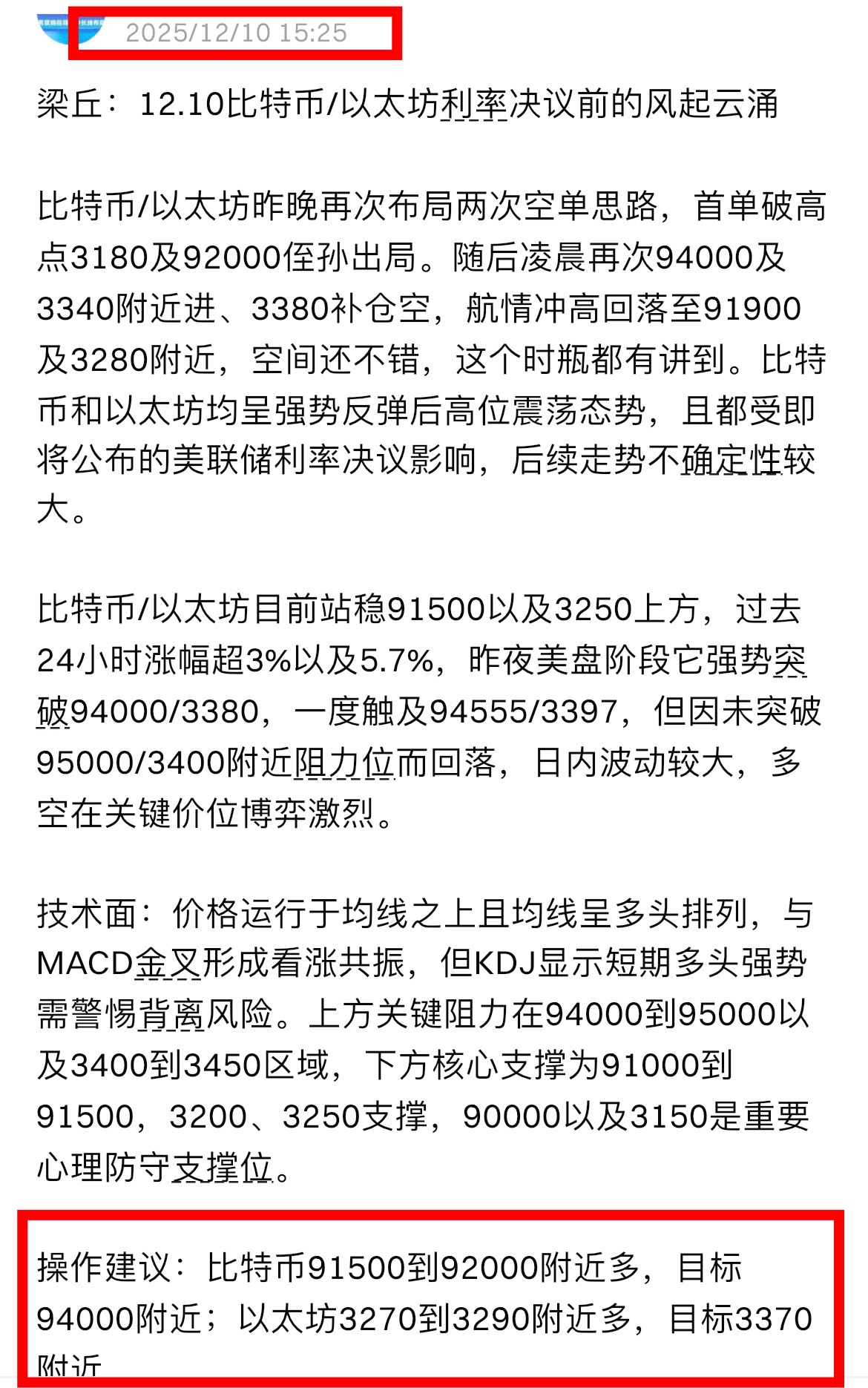 操作建议:比特币89500-90000附近多,目标92000-93000附近;以太坊3060-3080附近多,目标3150-3200附近。