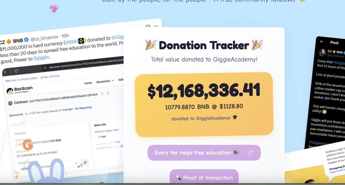 Please consider donating a portion of Giggle's transaction fees on the platform to support charitable activities. This is not moral coercion—donations are purely voluntary and at Binance's discretion. If implemented, it will perfectly continue Giggle's philanthropic spirit.