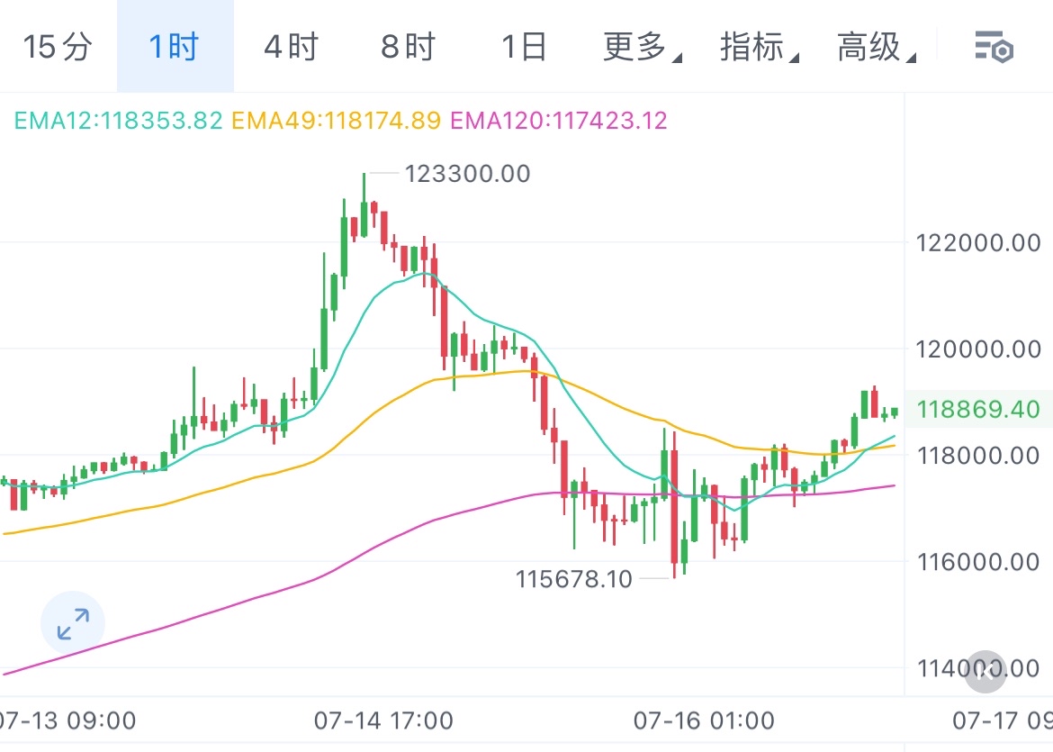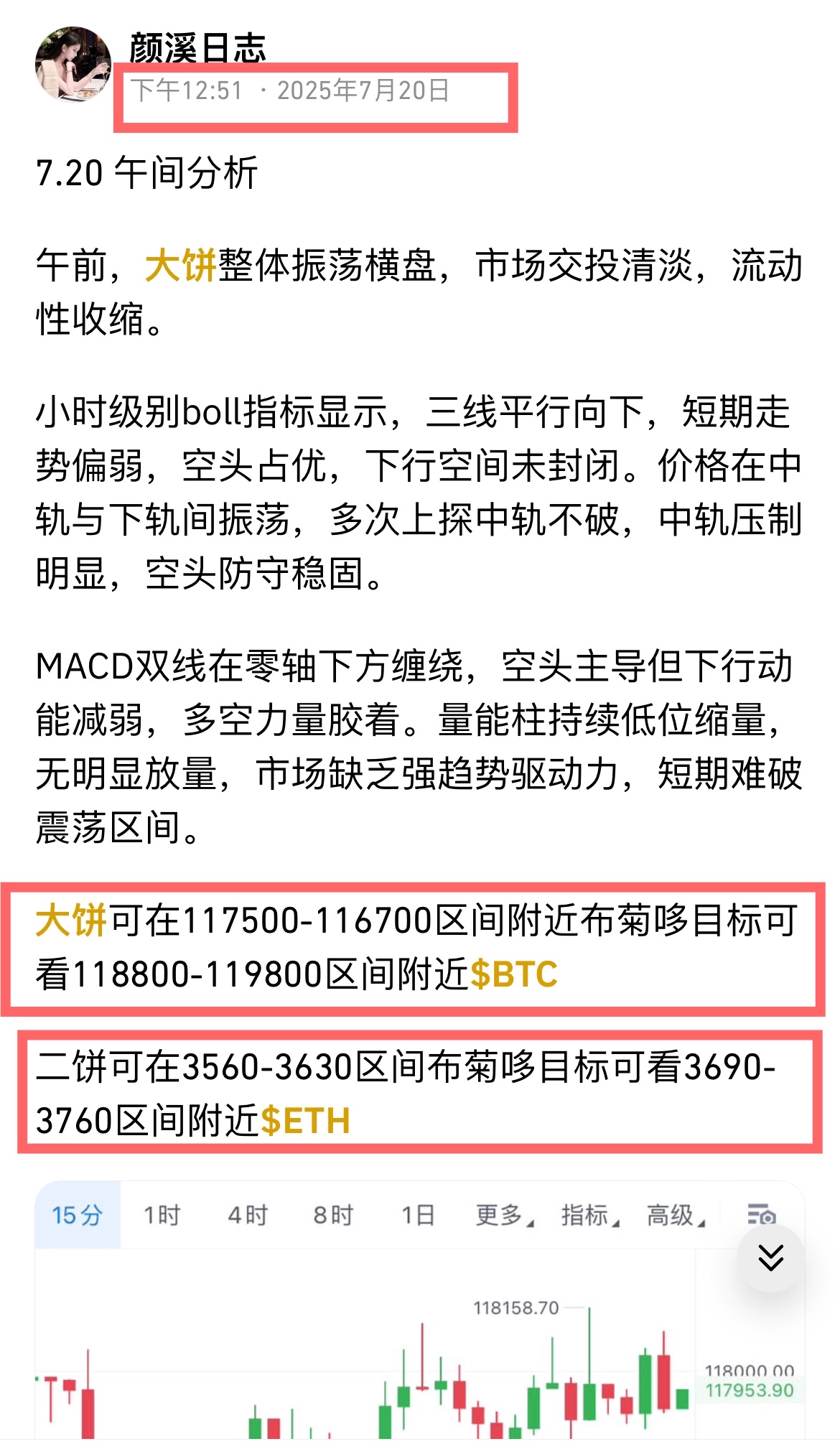 大饼可在117500-116700区间附近布菊哆目标可看118800-119800区间附近