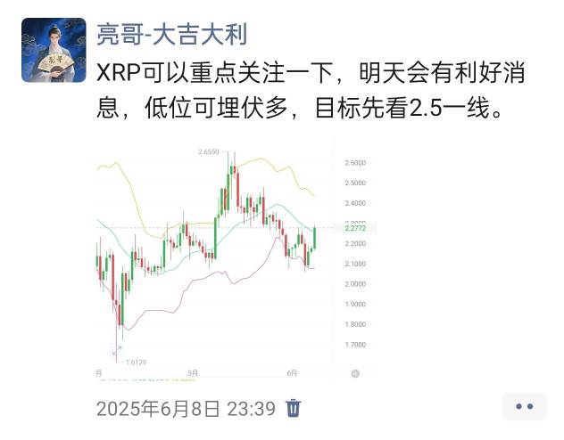 XRP,此前埋伏的低多,晚间也是带动着稳步上行。