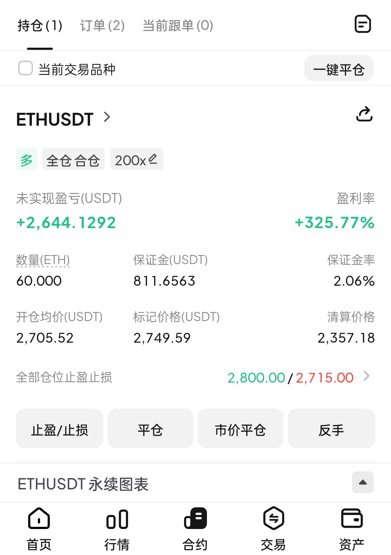 以太2700一线的多,已拿下50点,斩获2600🔪