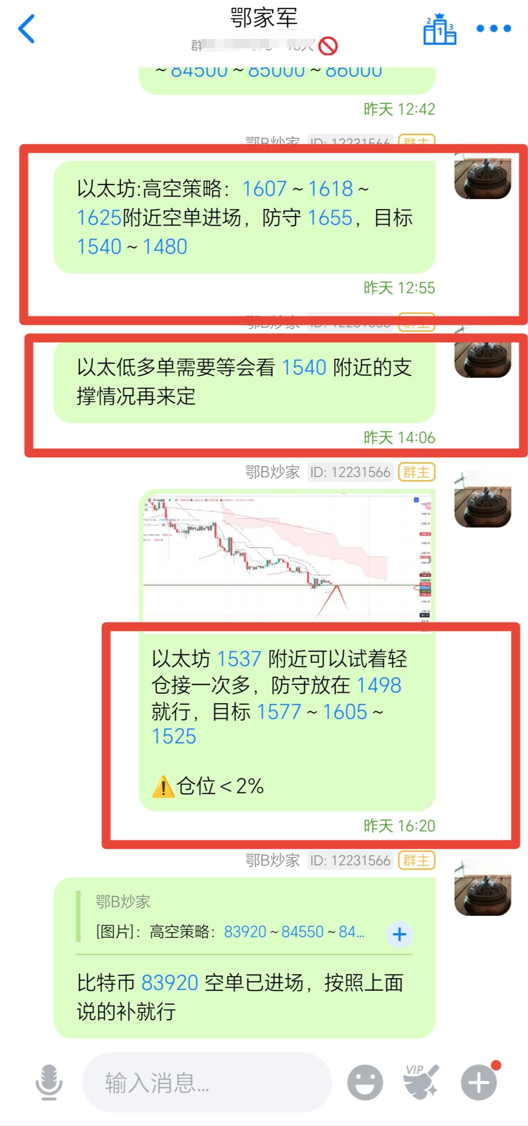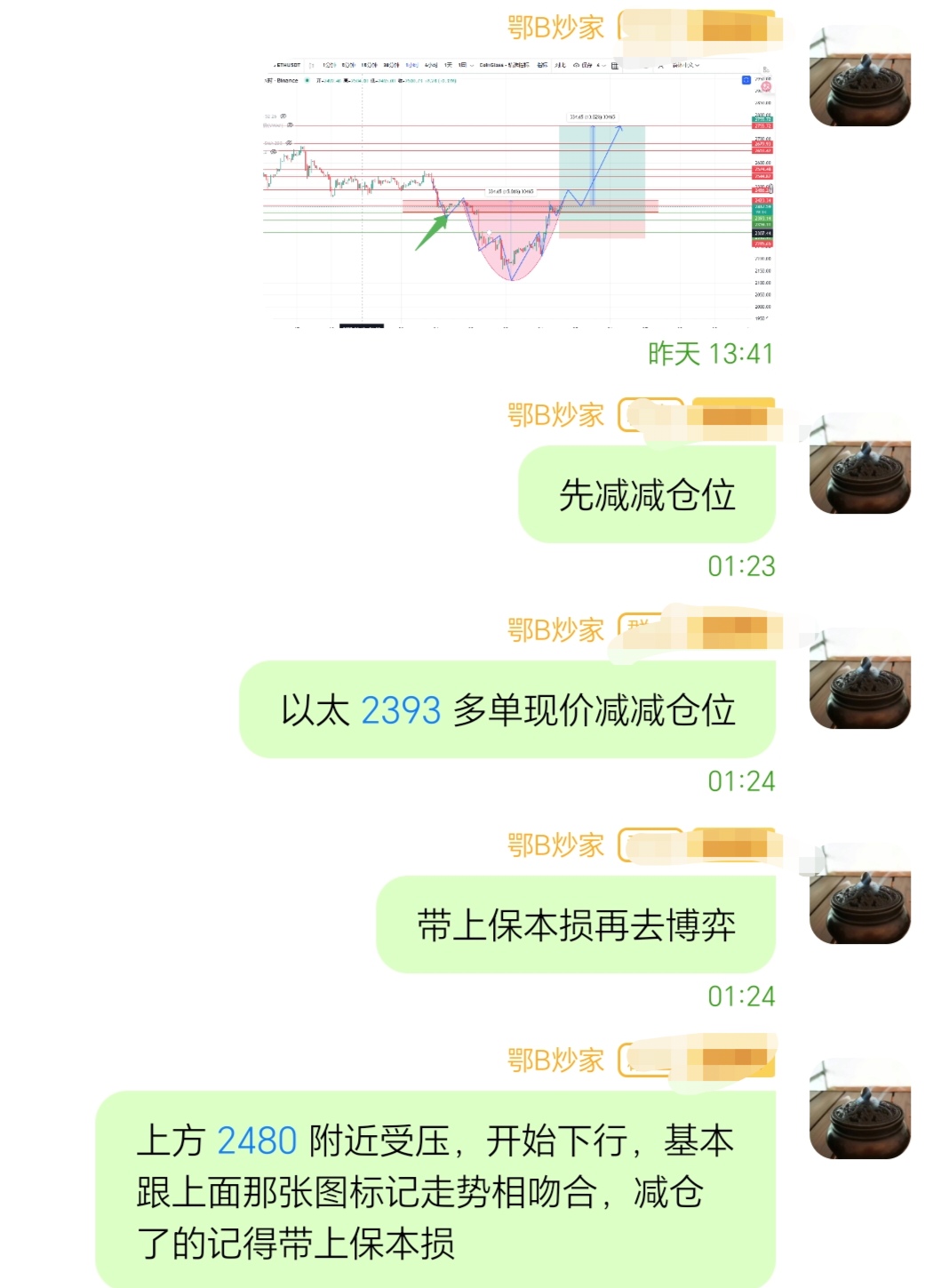 $BTC 也算是起来了,午间 121000 附近多单有进场的现在也是来到 123500 附近了,期间是有 2500 余点的,大家根据自身仓位适当减减仓,带个保本再去博弈即可, $ETH 4400~4350 附近多单最低午间测试 4400 一线刚好上车即刻反弹 4460 附近,期间也是有 50 余点的利润空间的,随后继续下探至 4316 一线再次反弹,均价也在 4350 附近,目前价格再次站上 4400 一线,建议带上保本损继续去博弈即可!稳健的朋友就及时落袋为安