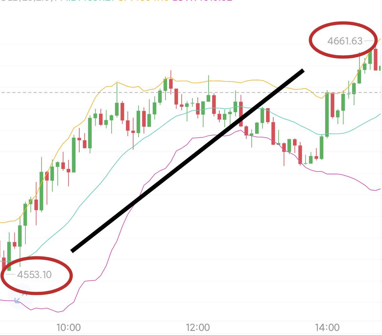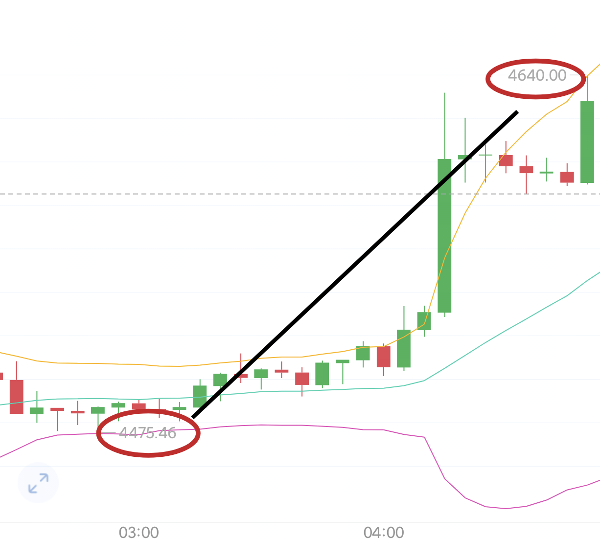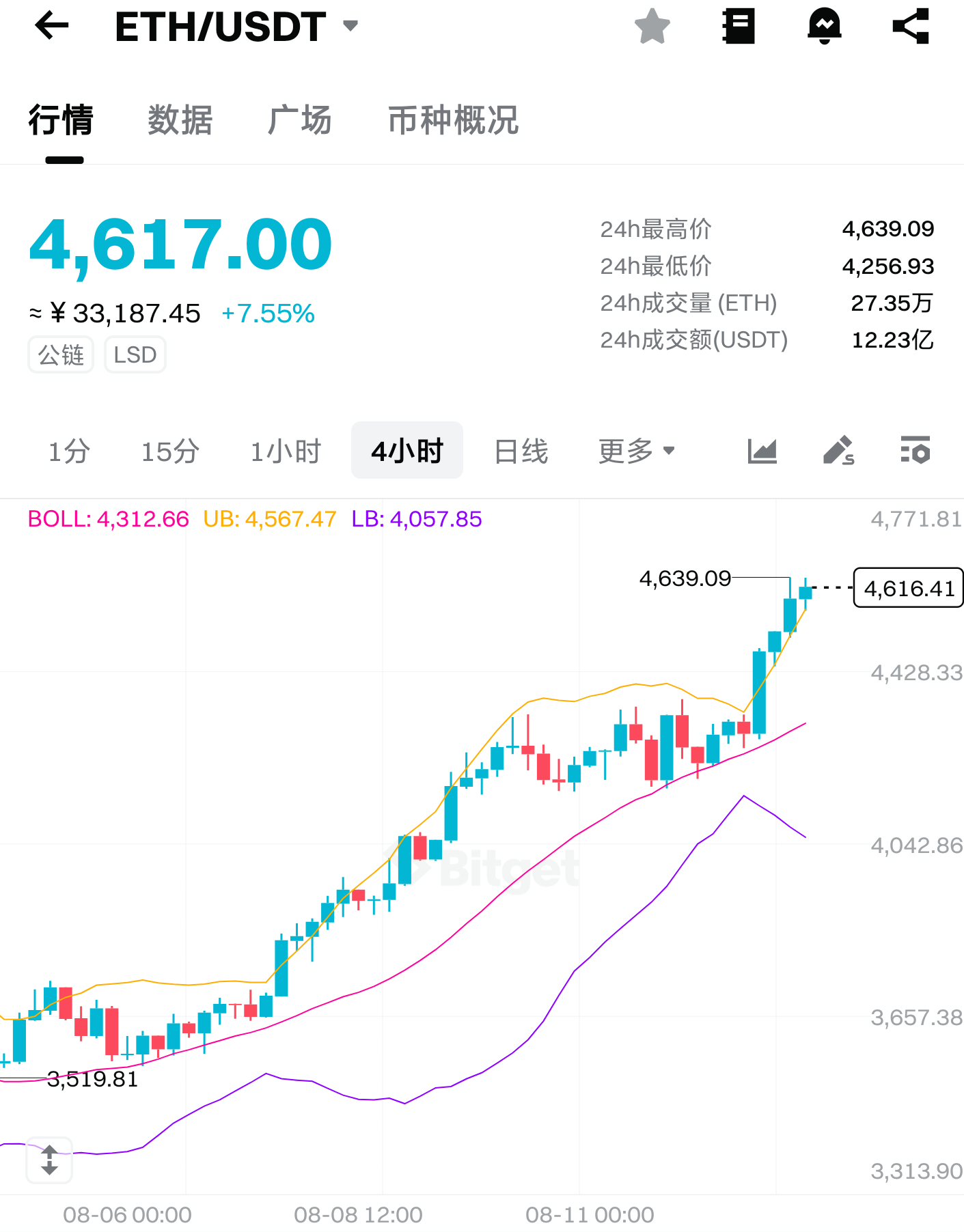 8.13周三早间分析 上行至4600附近,回撤小,看多情绪浓。4小时线、日线放量,短期多头延续,慎做空,倾向回撤后看多 ETH:4550-4600附近多 目标4700-4800