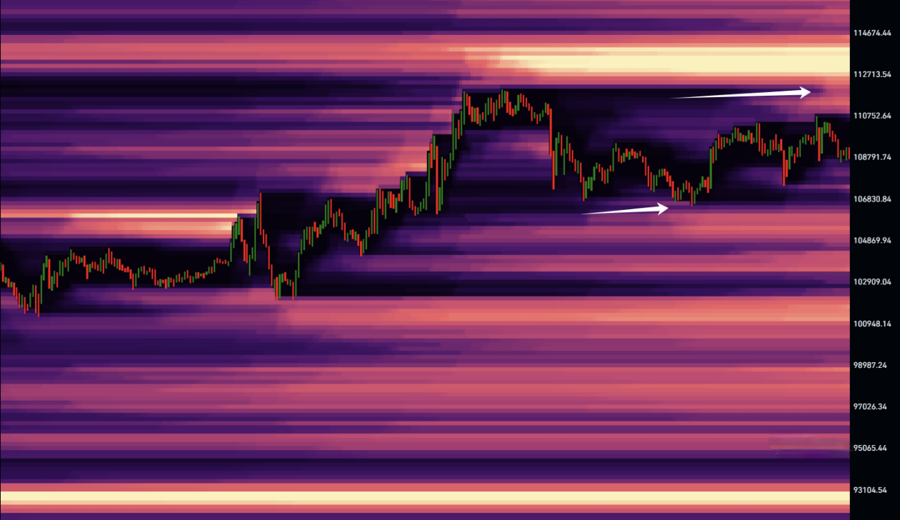 价格想要拉盘清算空头流动性的话,下面太多多头仓位了,这些仓位都是贪婪的吸血鬼,知道这里早晚要清空头,所以就等着去114700止盈呢...