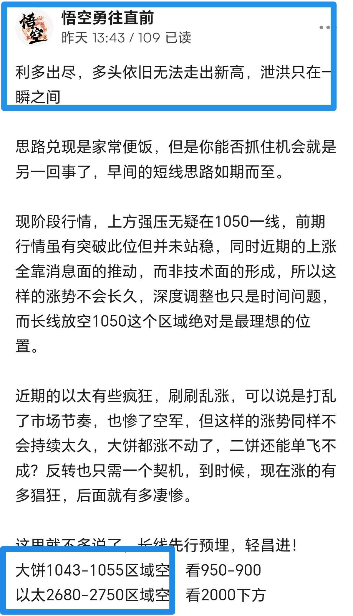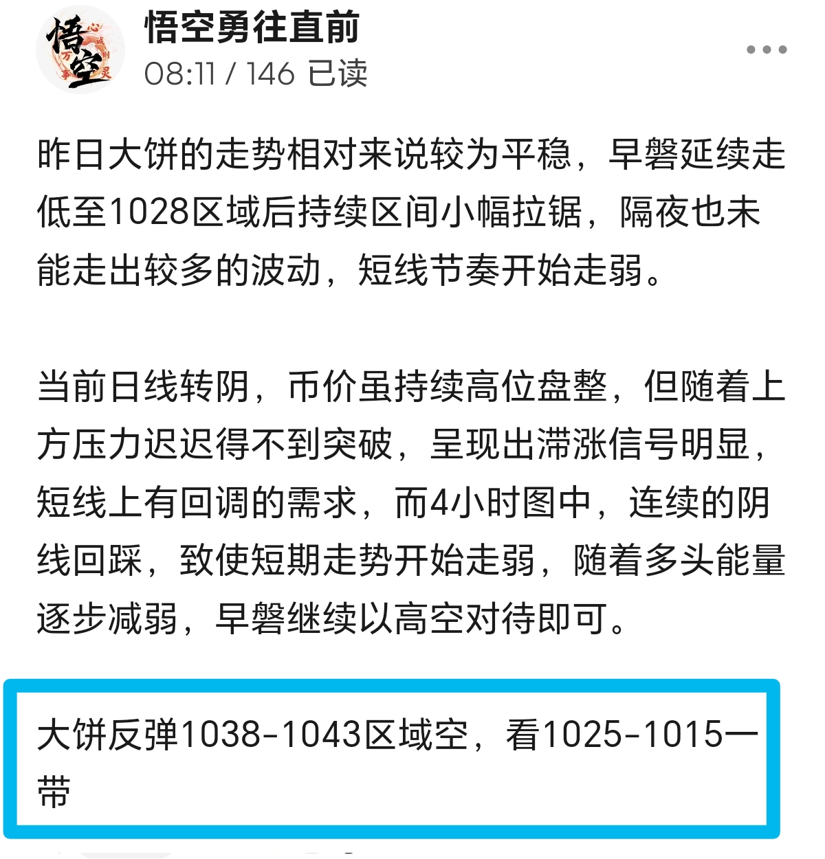 晚上不做墙头草,继续以高空为主 围绕1025-1030区域空,看1010-10万 若跌破10万支撑继续下看980 若未能跌破10万可择机做哆