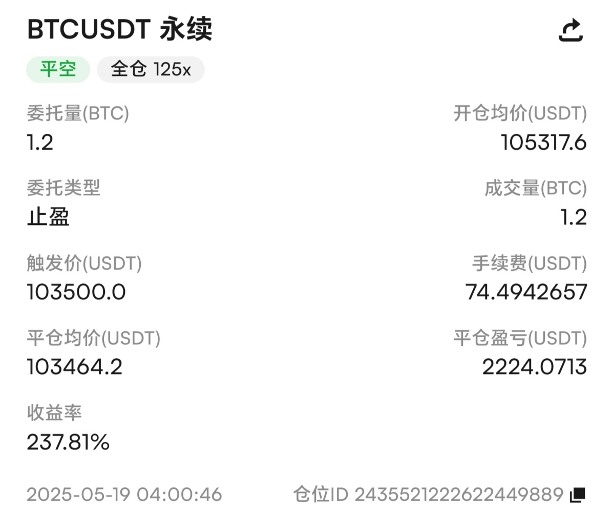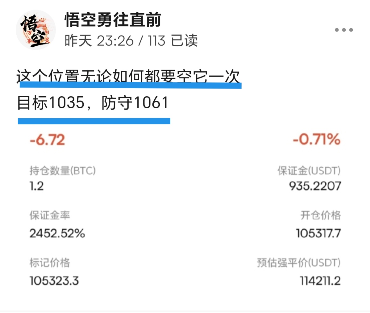 兄弟们,止盈了,止盈了 昨晚公开1053做空 1800點完美落袋 睁眼就是美滋滋的