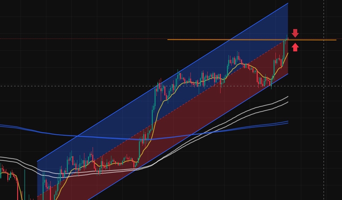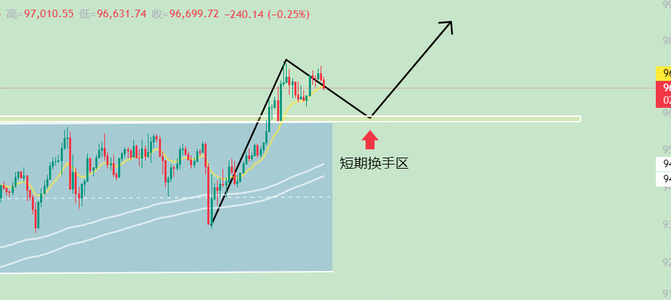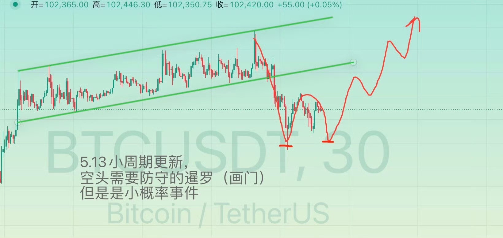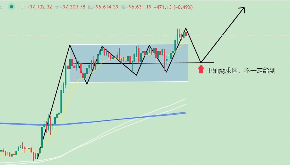 如果不是则按照视频剧本继续向上看,105k位置,毕竟要尊重一下现有的既定事实(即多头趋势)