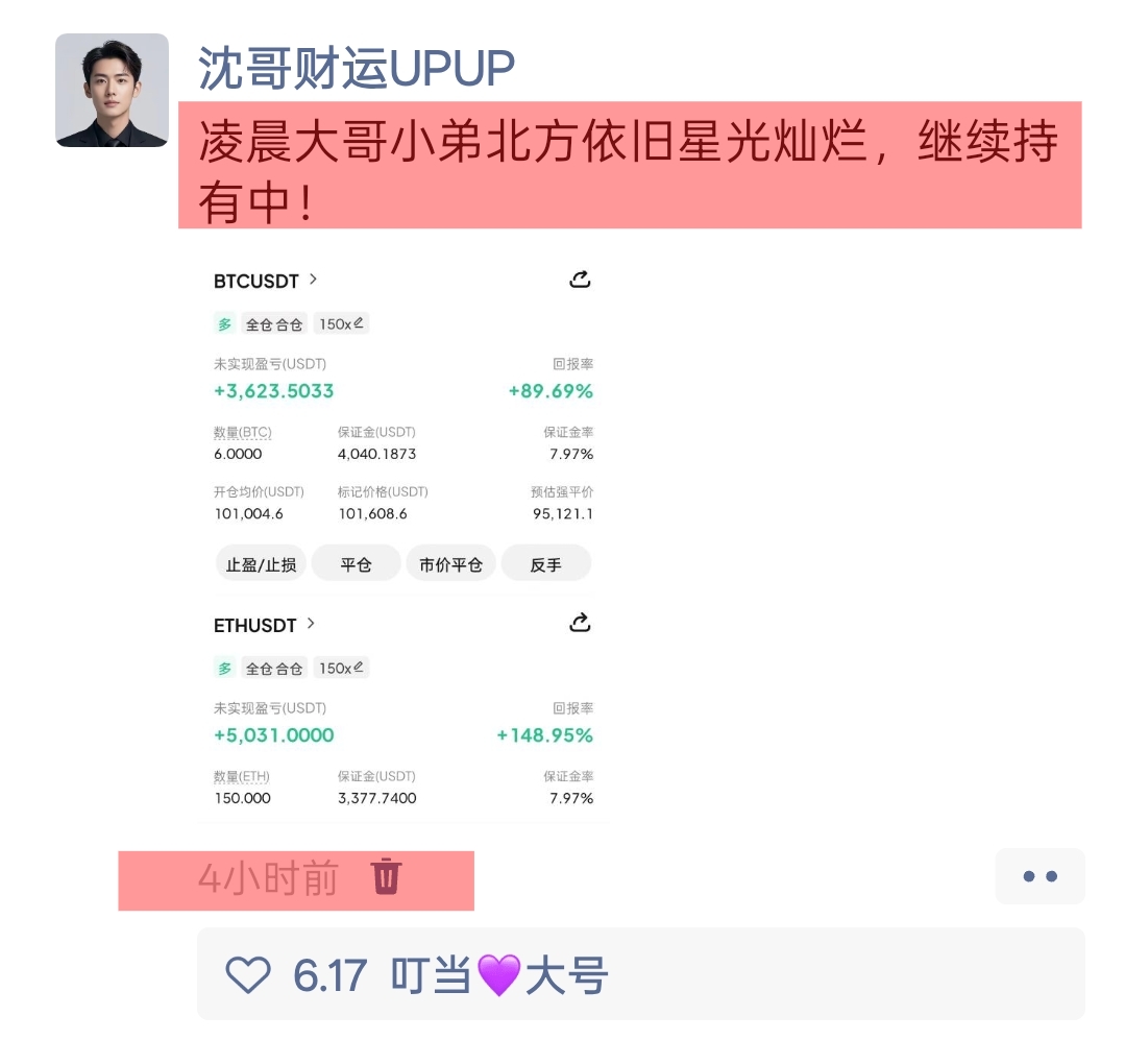 人间本不该令我这么欣喜的,但是你来了 日内三单完美落幕,小小收货4万多U[得意]