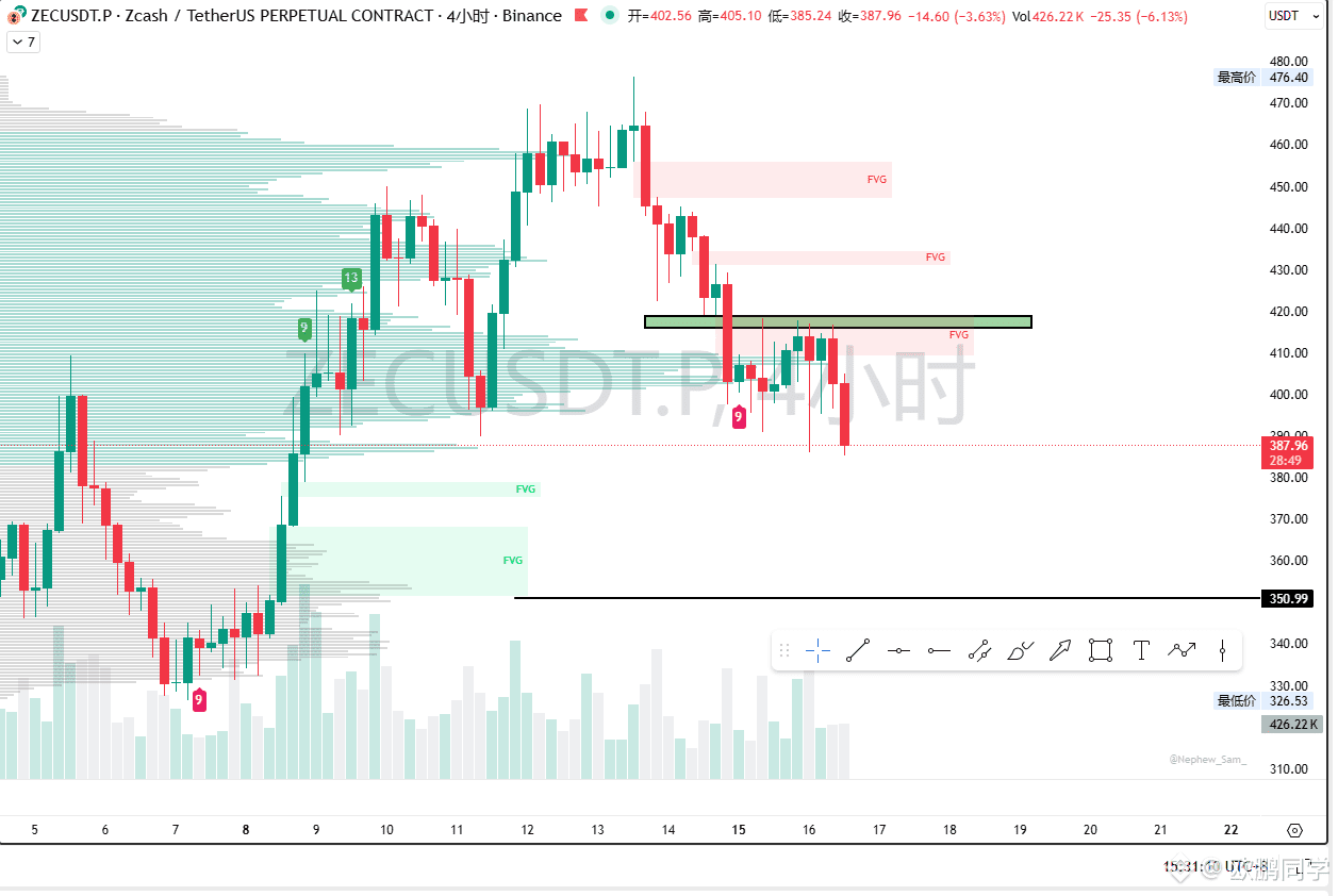 ZEC反弹失败后再次开启下跌 395开了空单立即浮盈 而上午开了XMR空单一天了不动 浮亏走掉了 $ZEC {future}(ZECUSDT)