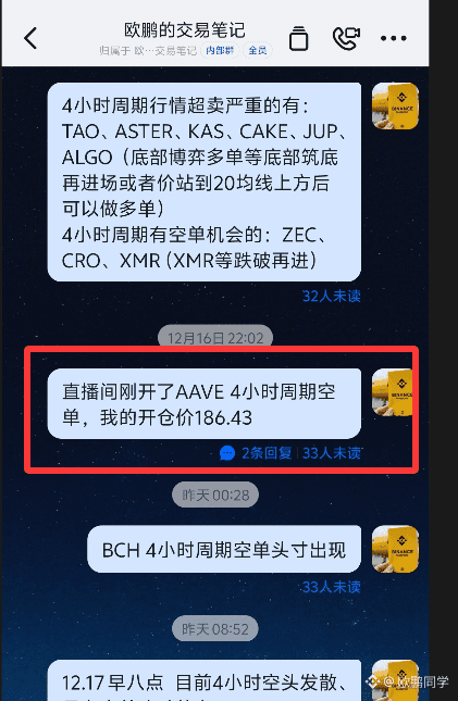 16号、17号晚上 均价187的AAVE 空单 再次精准! 目前4小时周期行情有点超卖,杠杆高的可以止盈一部分,剩下的仓位让利润奔跑!! 昨天晚上和今天早上的BCH 4小时空单刚开始奔跑,让子弹飞一会儿!