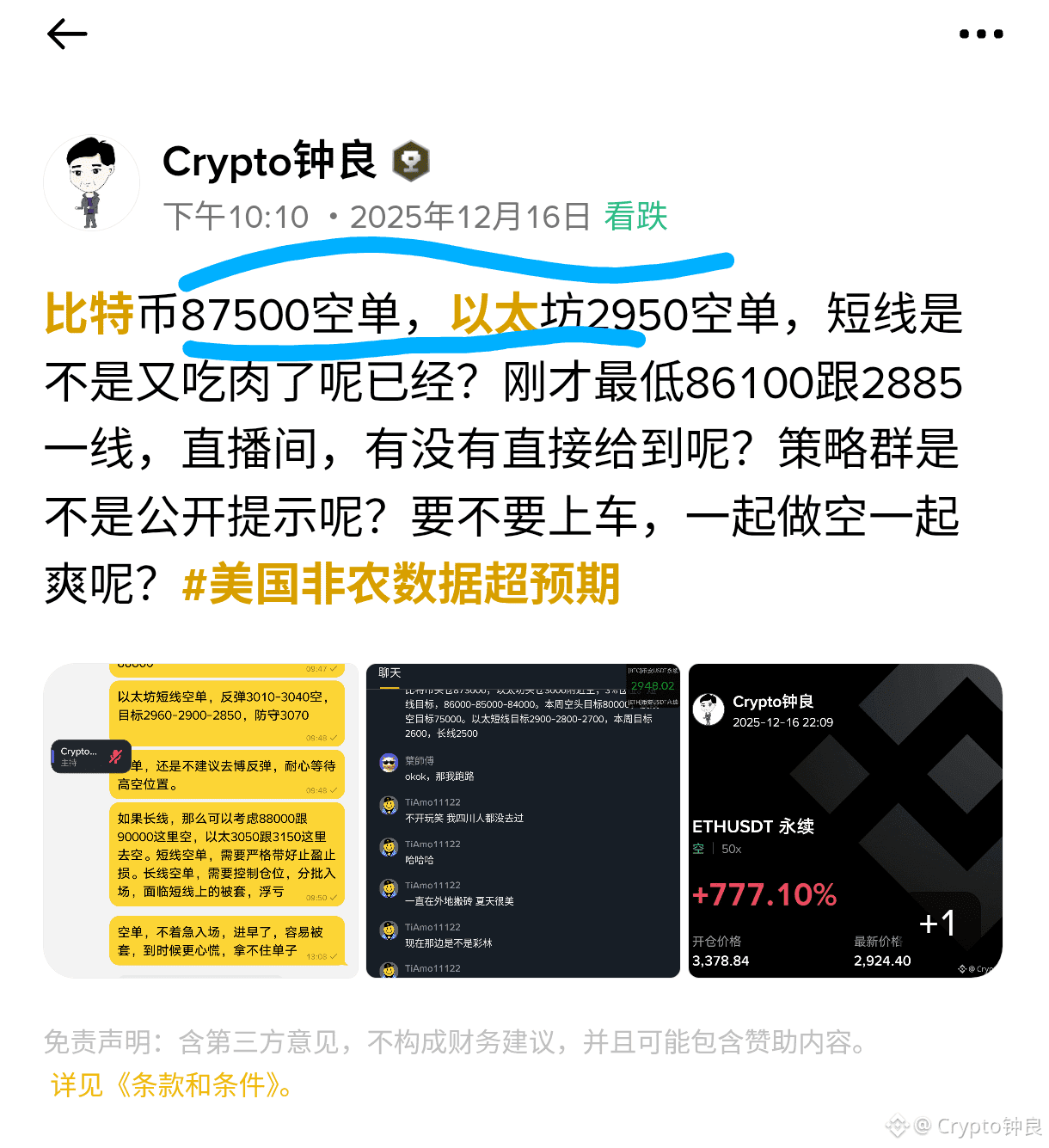 Was today exciting? Did your short positions get scared off? I mentioned in my post this morning that autumn harvest and spring planting are not in the same season. Did you take that to heart? My analysis for Bitcoin today was to short at strong resistance levels of 88,000 and 90,000, and short at 2980 and 3030 for Ethereum. The strong resistance levels were accurately predicted. Did you get in at the highest resistance levels? Should we give this a like? Want to join the chat in the live stream?
