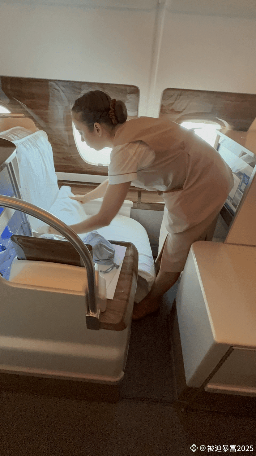 The A380 from this luxury airline is great! Not only is the business class much more spacious than other planes, but it also has a starry sky ceiling, bedding service, and even pajamas. The flight attendants are also very engaging and provide excellent emotional support.