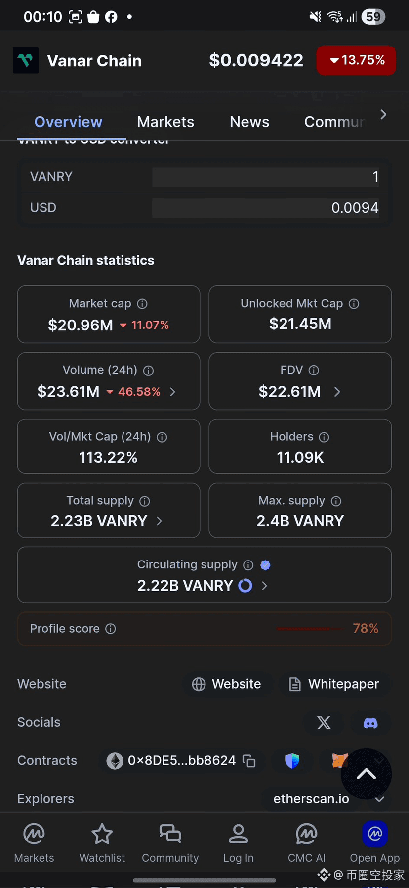 I've been closely monitoring the price movement of $VANRY lately, and to be honest, this chart gives me mixed feelings. Looking at the chart, the price is struggling around 0.0065. Although there's been a slight rebound of about 1.8% in the short term, looking at longer periods—whether it's 7 days, 30 days, or 90 days—the declines are all in double digits. Especially in the last six months to a year, it's dropped by nearly 80%, which isn't just a simple correction, but almost a complete halving.