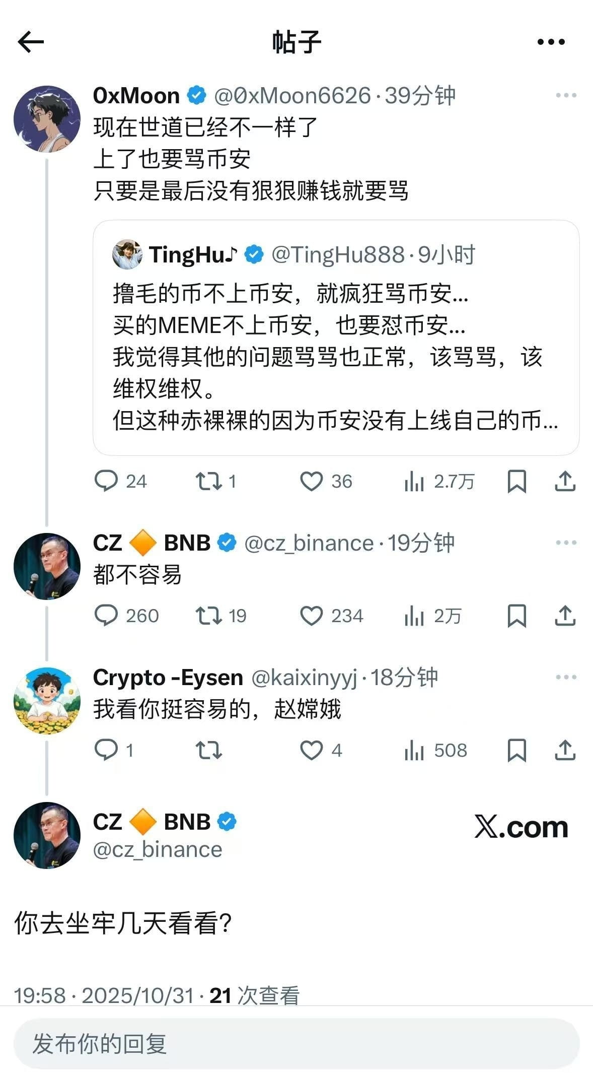 CZ:说我容易的你坐几天劳试试🤣 $BNB {future}(BNBUSDT)