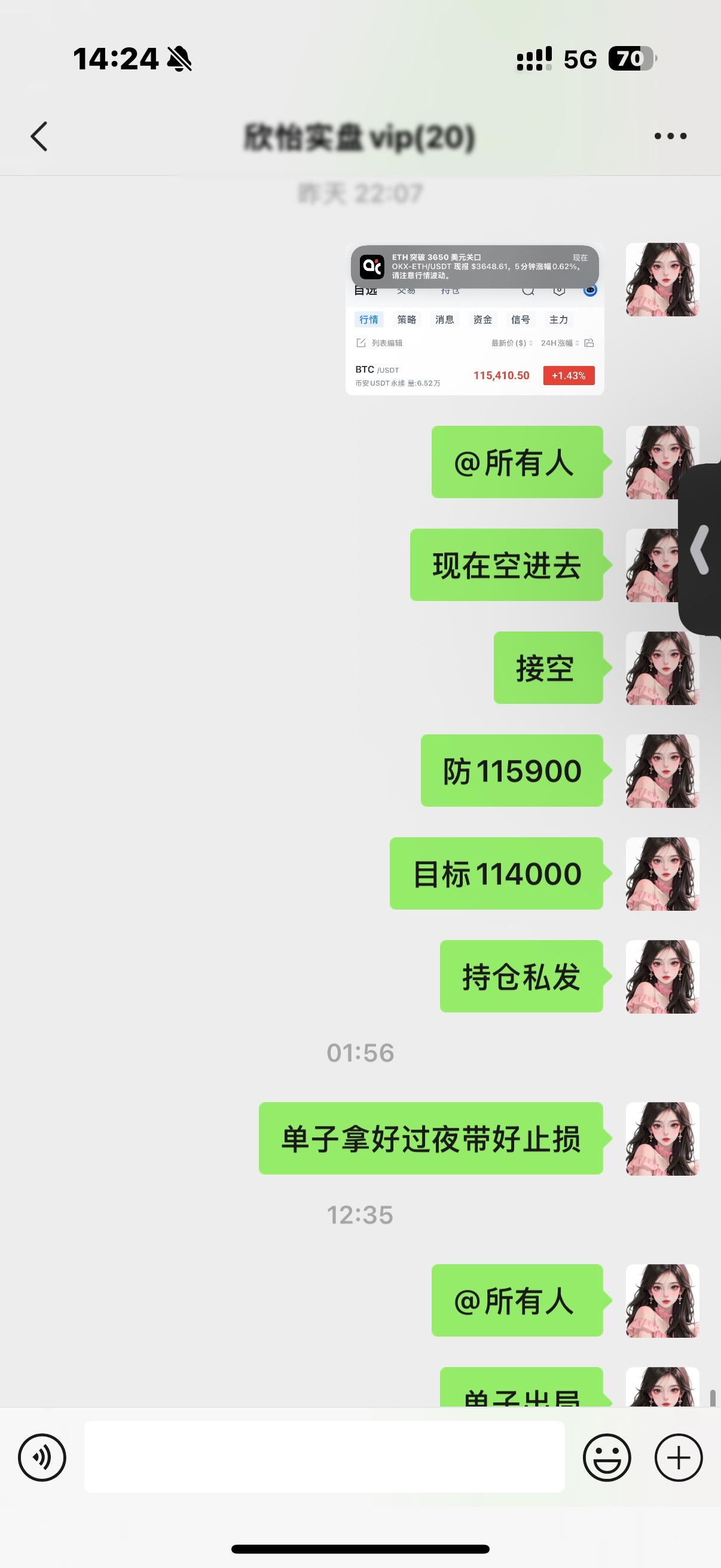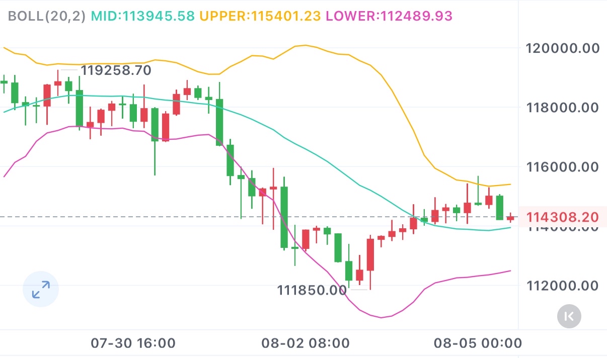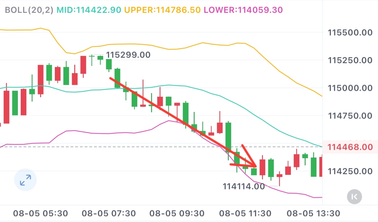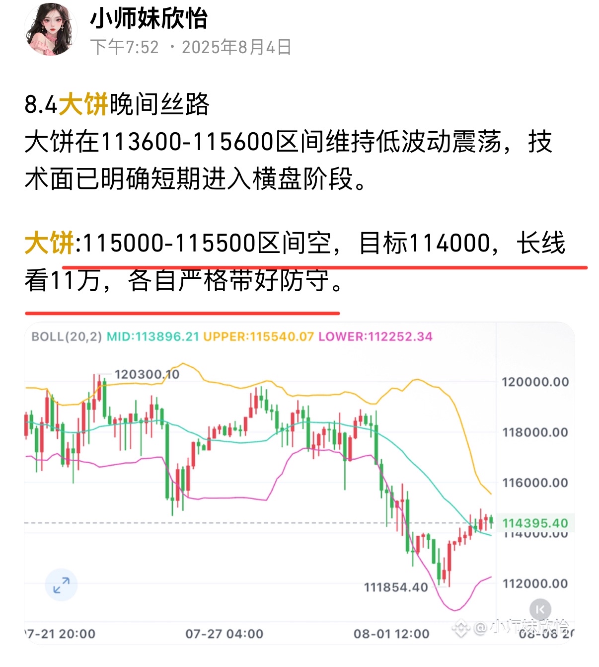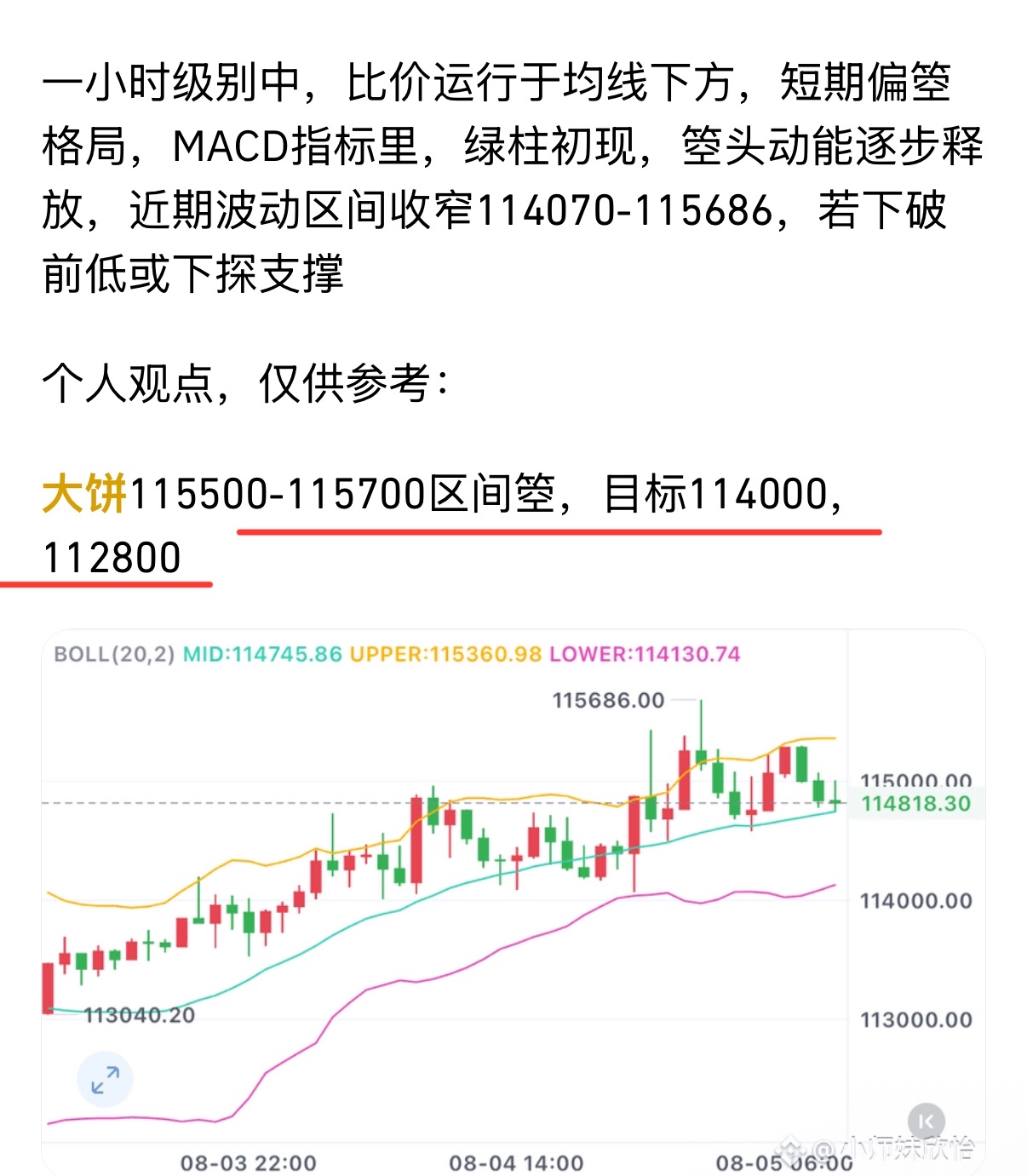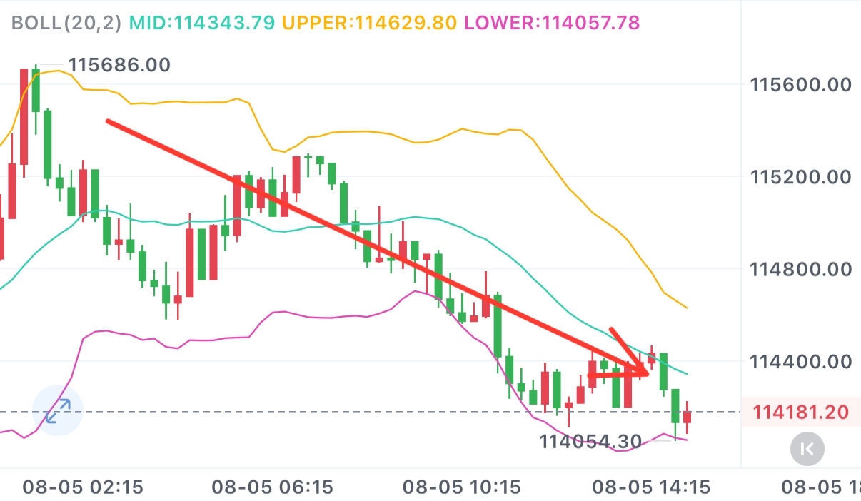 已经提示很到位了、布林带出现明显回踩迹象,目标看114000方向目标都已给到、照单执行就是千余点。