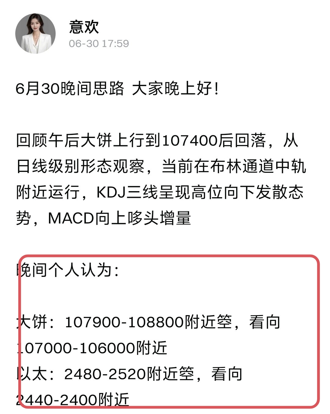 夜间需重点关注107700这一关键位置。若能有效站稳107700上方,则表明4小时级别的回调有望结束,行情将重拾上行趋势。上方的压力位可依次关注108780、109700、110670附近。