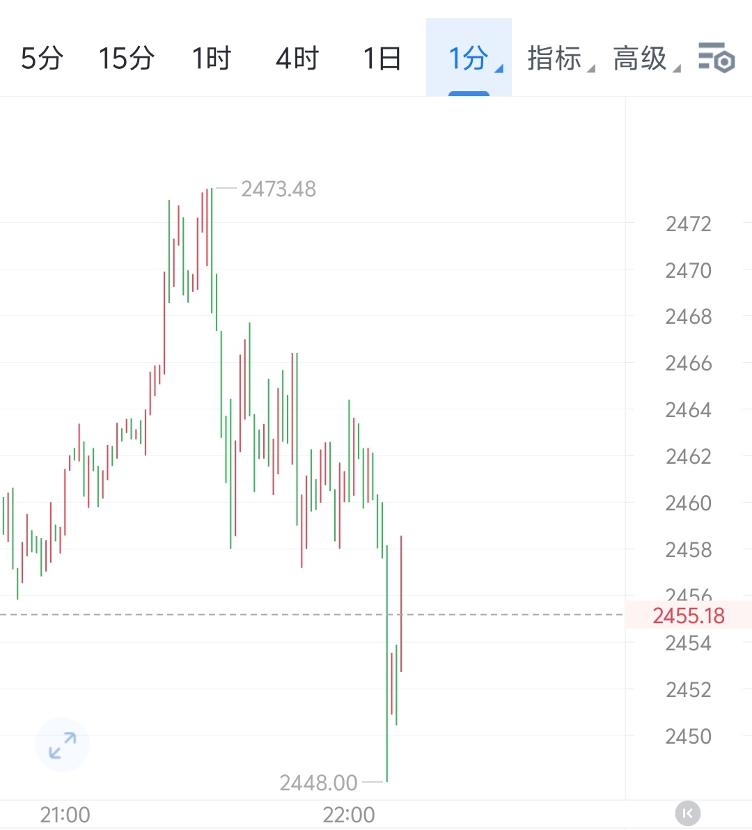 夜间反弹的关键点位在2470。只有站稳2470上方,1-2小时级别的回调才可能宣告结束,行情有望延续上行态势。上方的压力位可依次关注2500、2523、2545附近。
