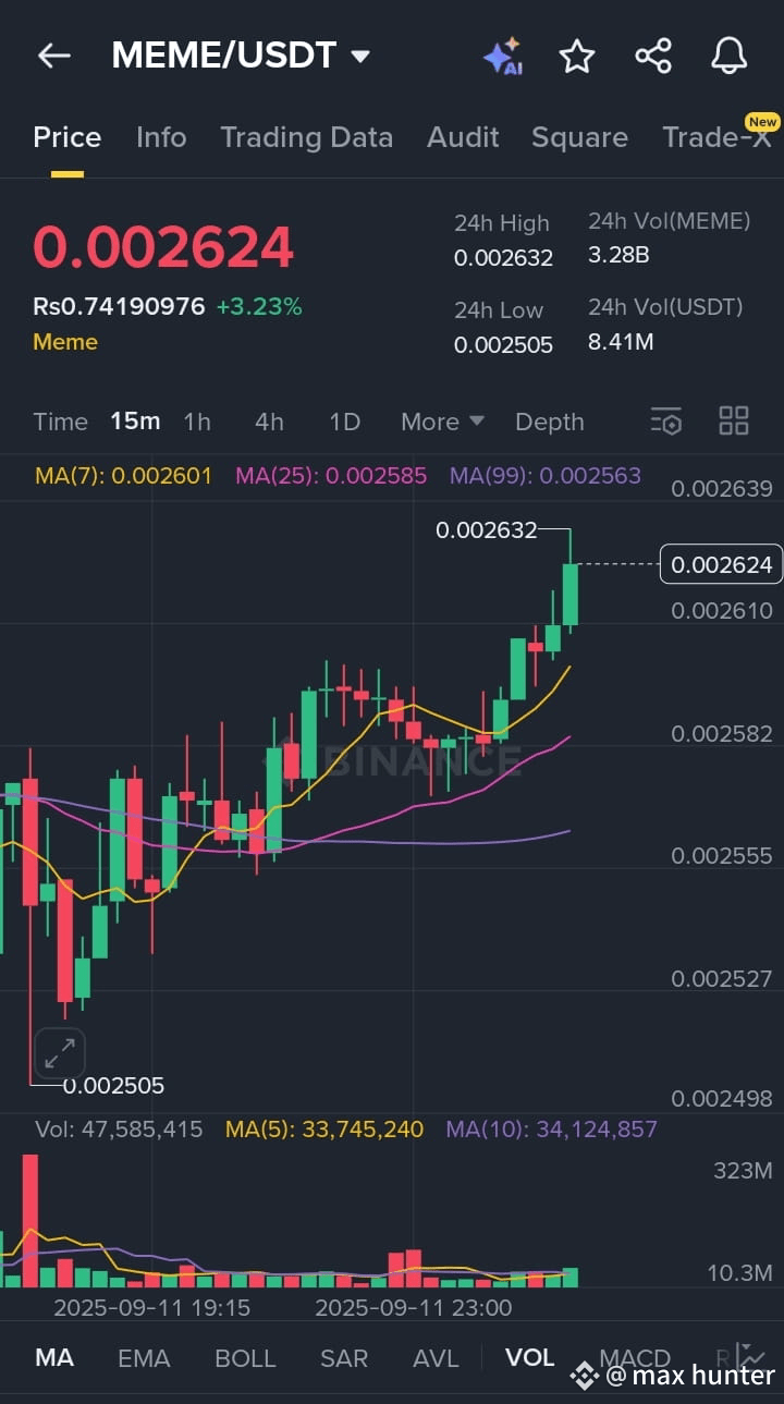 🚀 $MEME {spot}(MEMEUSDT) /USDT 多头信号 – 看涨机会!🚀 💰 价格走势:支撑位附近买盘势头强劲 – 多头正蓄势待发,准备迎接下一波上涨! 🎯 交易设置: • 入场价:0.002610 – 0.002620 • 目标价: TP1 → 0.002640 TP2 → 0.002660 TP3 → 0.002680 • 止损价:0.002590 ⚠️ 📊 关键价位: 支撑位:0.002600 – 0.002610 阻力位:0.002640 – 0.002680 ⚡ 风险管理:保持 1-2% 的资金敞口,并根据市场波动调整仓位。 🔥 $MEME 看起来即将突破更高点——多头已掌控全局! #MEME #SECReviewsCryptoETFS #BNBBreaksATH #ETHWhaleWatch #BinanceHODLerHOLO