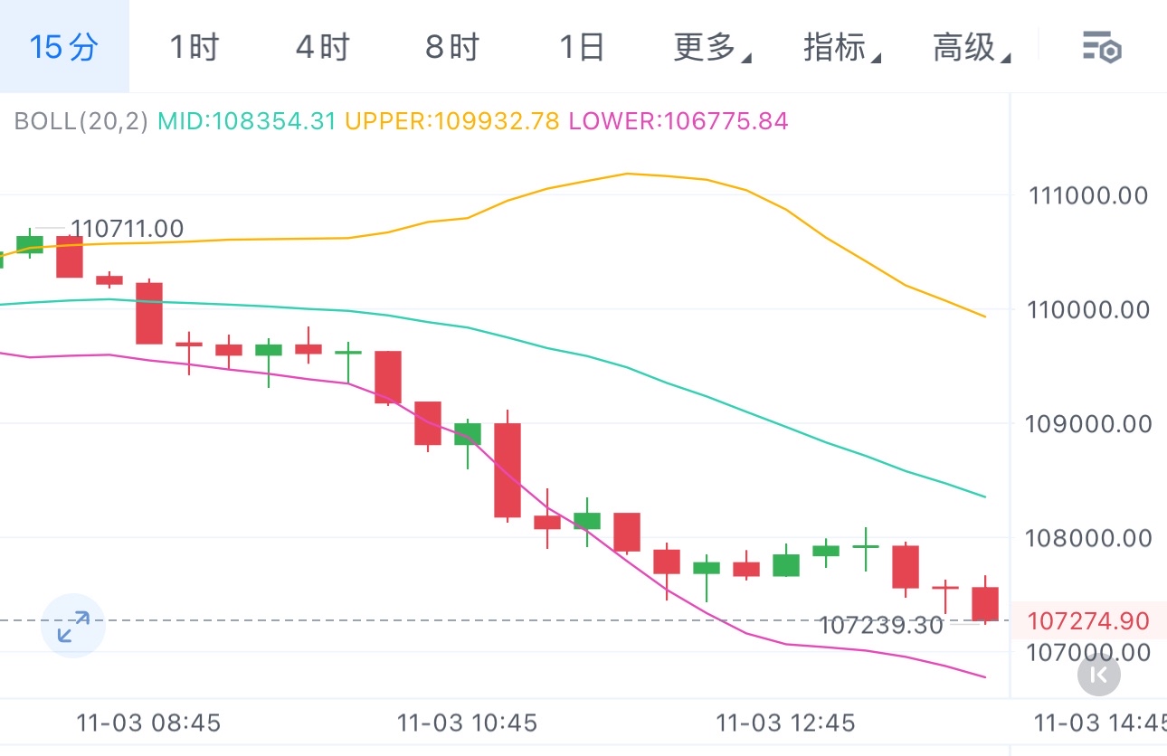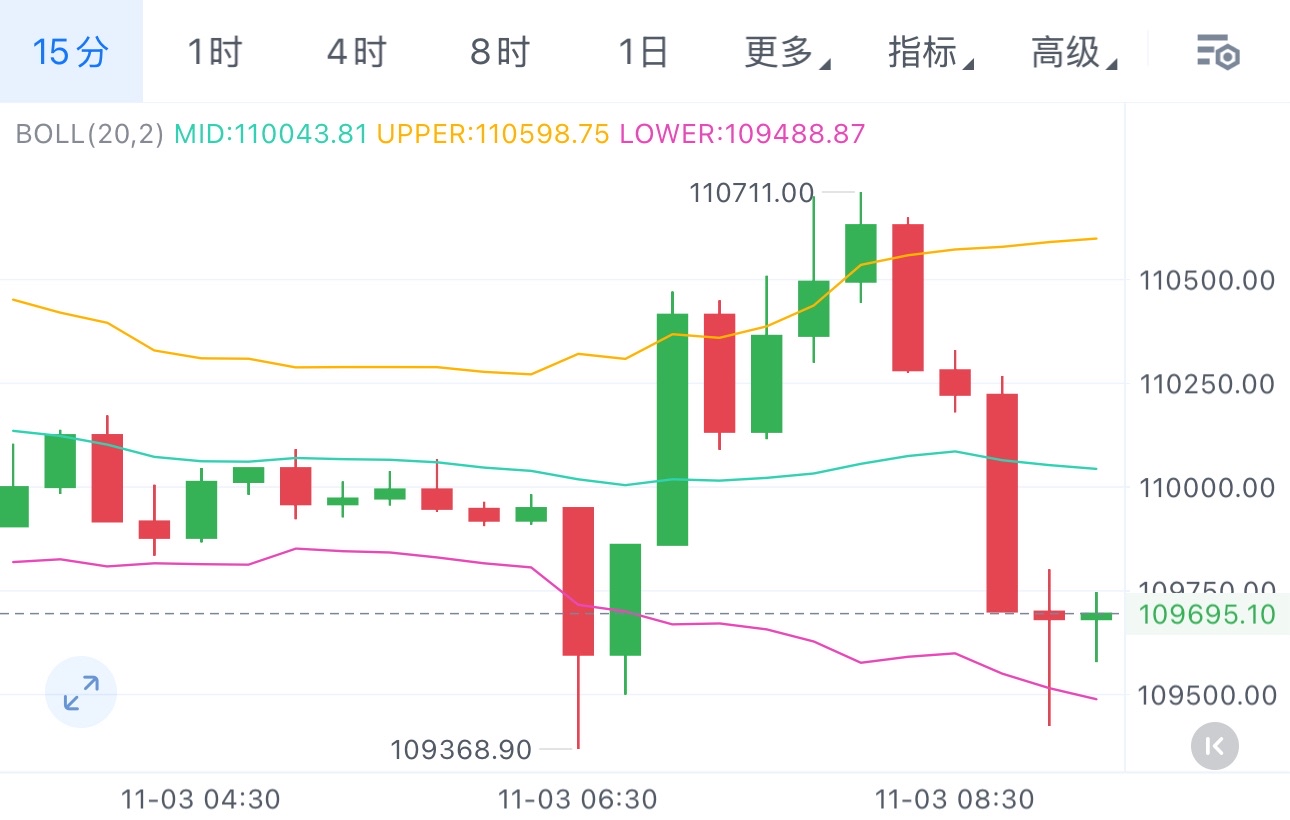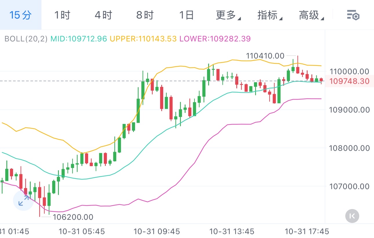 当前市场呈现明显的区间震荡特征,价格在关键支撑位108000和阻力位112000之间运行。