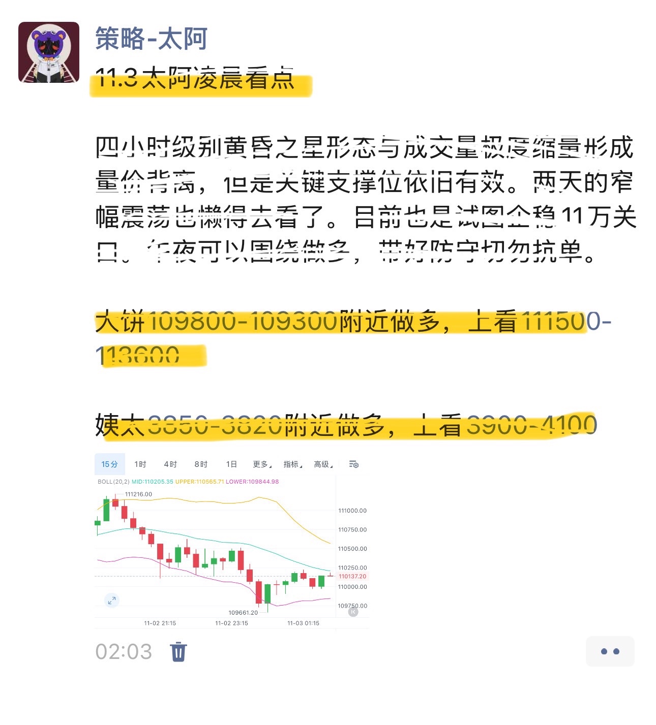 大饼:110000现价空,111000加仓空,目标108500附近,