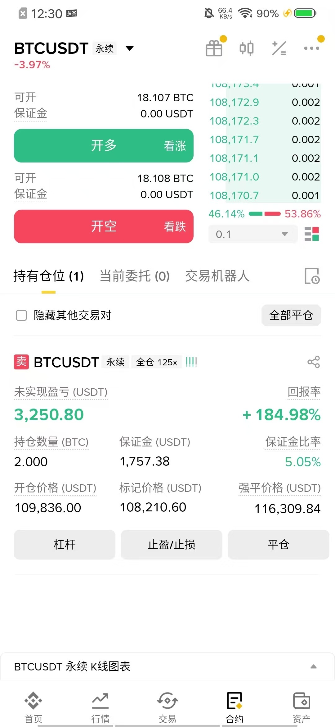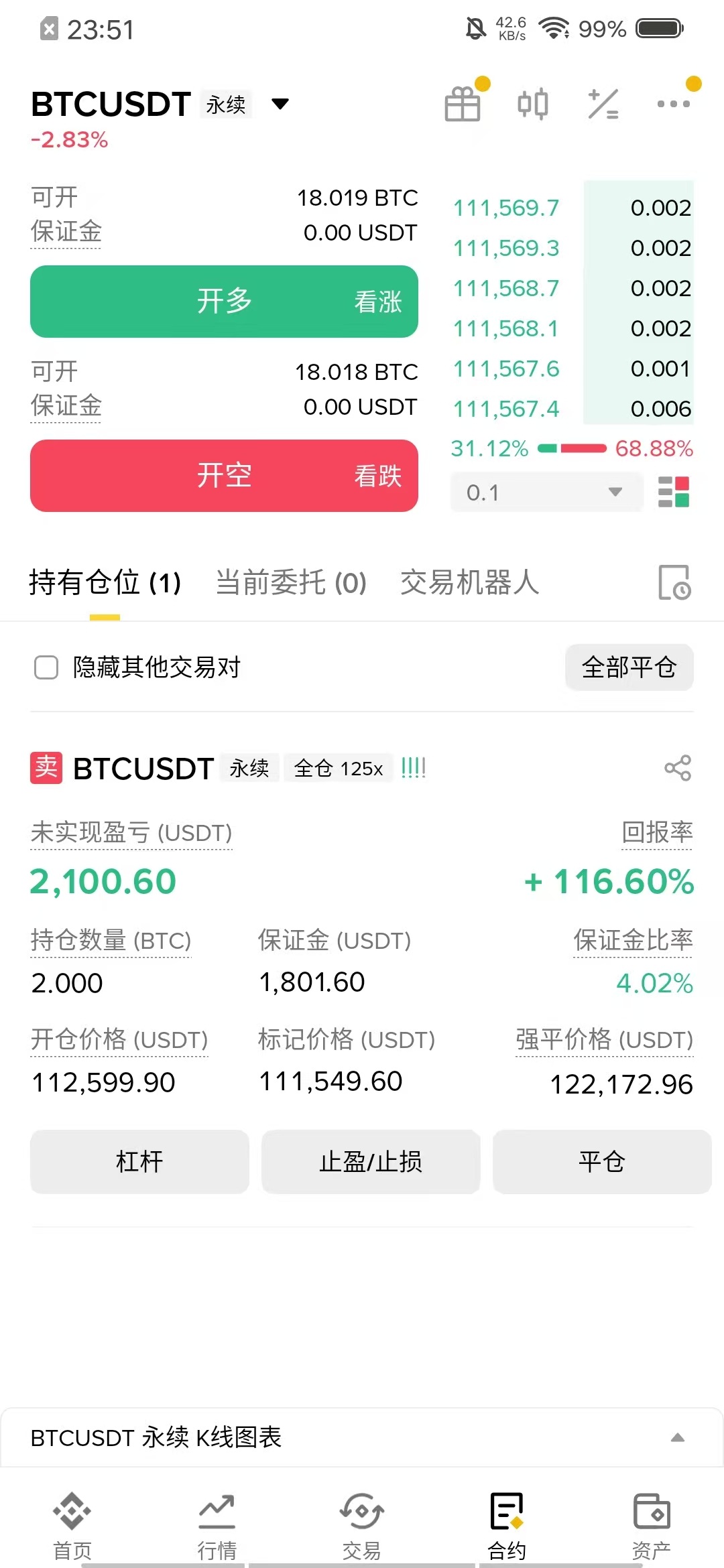 3天40000U干到10万U! 很可惜大饼没能冲进12萬! 幸好及时反手做了一手空!